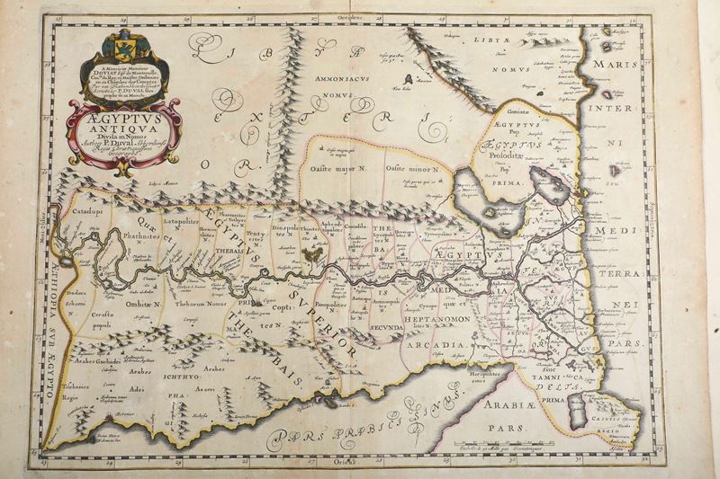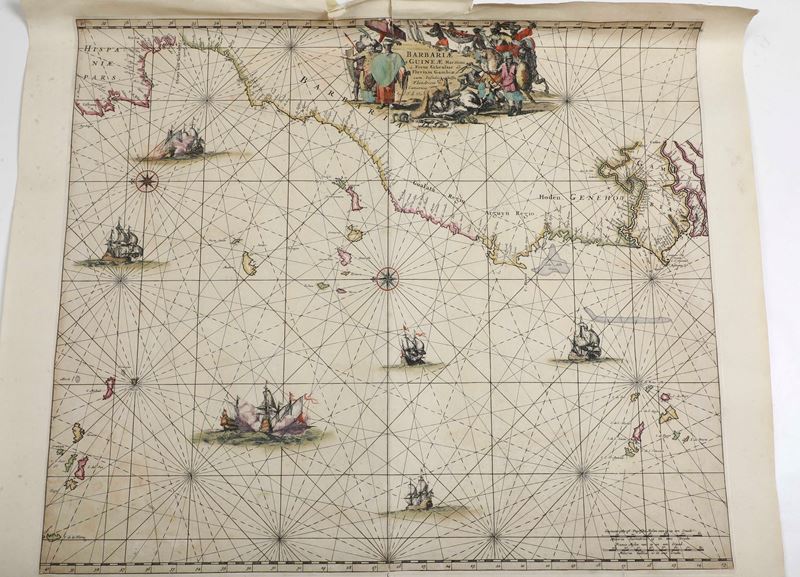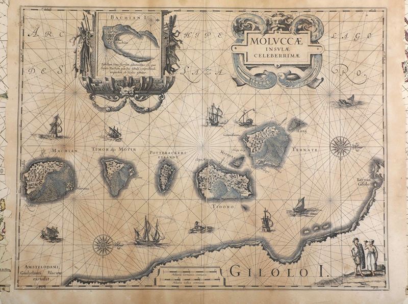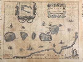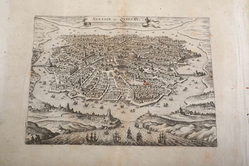 Tre carte geografiche di epoche differenti e una pagina di cinquecentina con veduta di città (difetti)