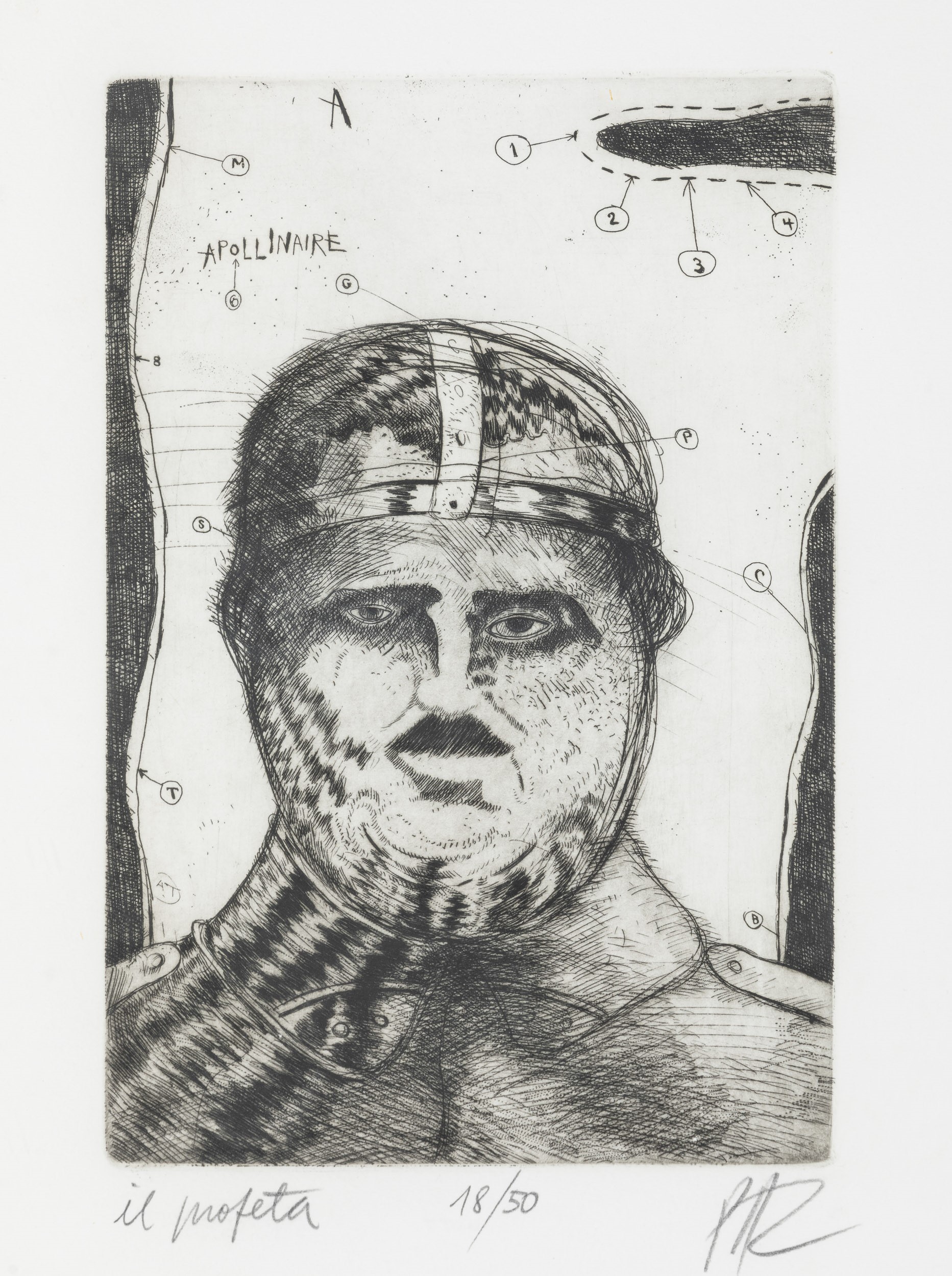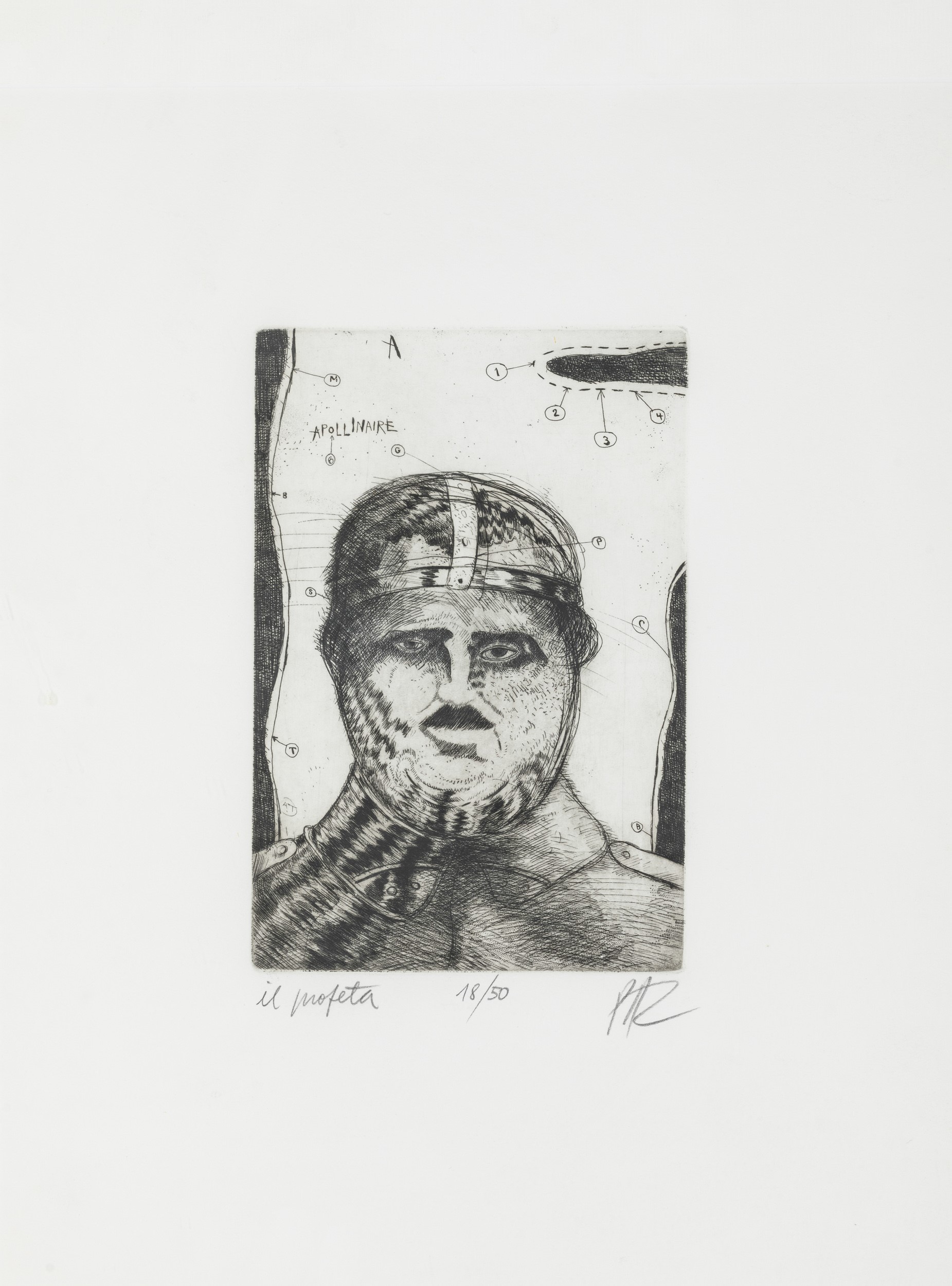 siglato in basso a destra, intitolato in basso a sinistra e numerato in basso al centro