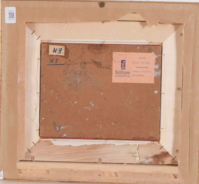 Firmato “Guido Casciaro 1946” in basso a sinistra. Etichetta della Mediterranea Galleria d'Arte sul verso.