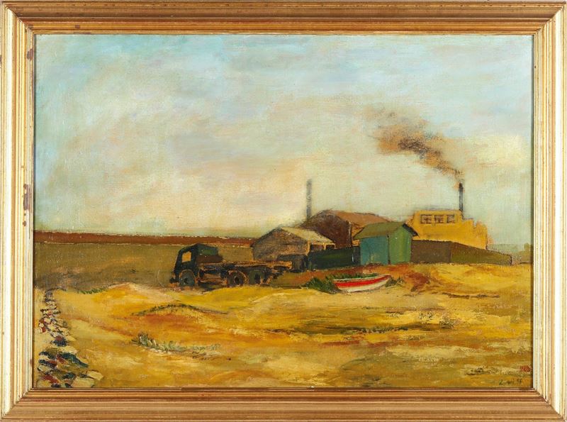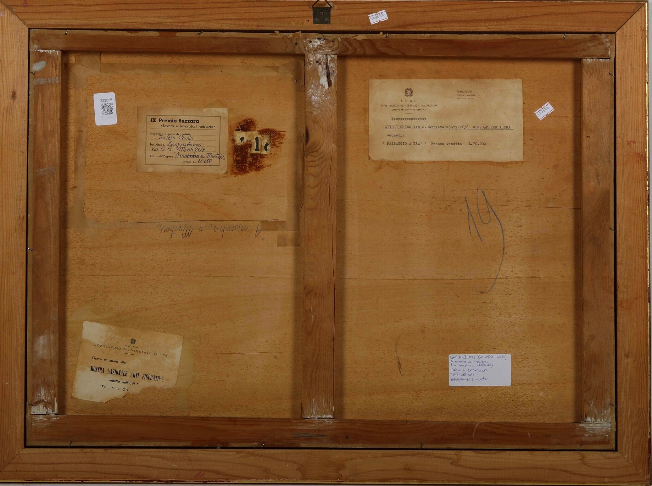 firmato in basso a destra (al retro etichette di tre mostre), A Maenha a Murtrou, al retro due titoli di cui uno genovese