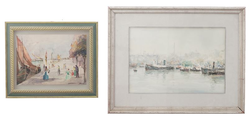 Lotto di due acquerelli firmati Zandrino e Merlo