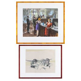lotto composto da una litografia (cm 70 x 80) e da una acquaforte (cm 55 x 75)