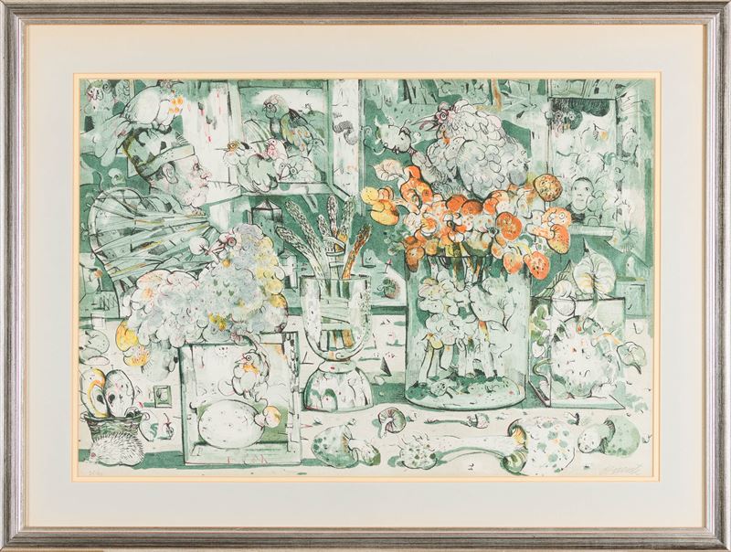 ciascuna grafica è firmata in basso a destra e numerata in basso a sinistra