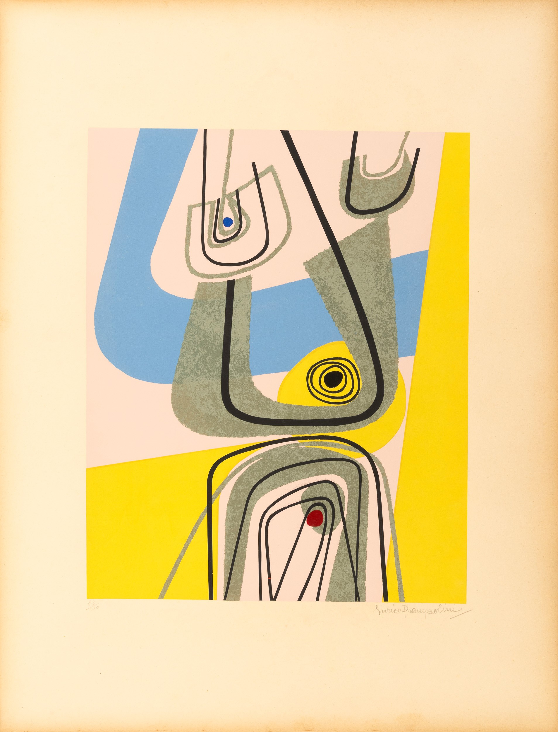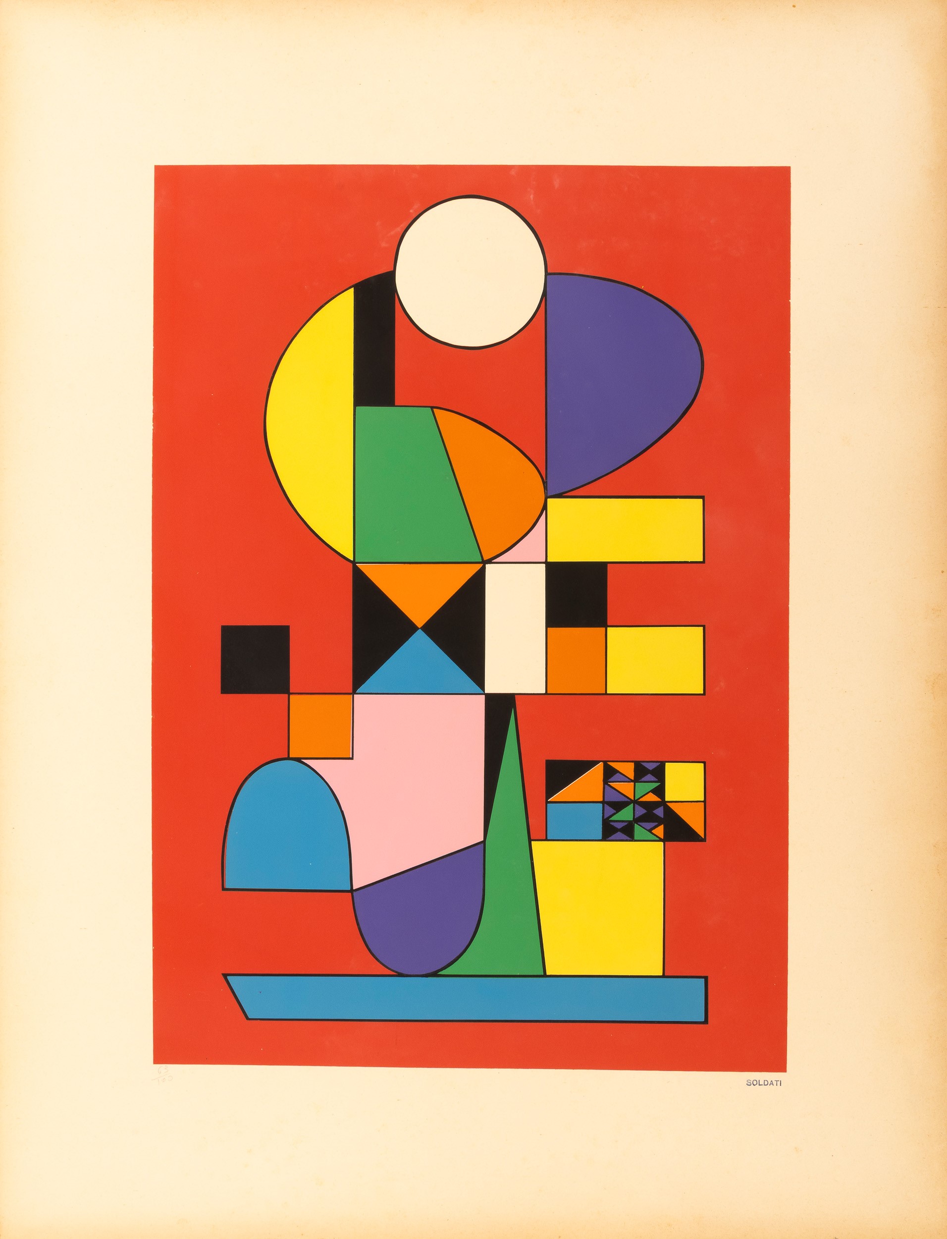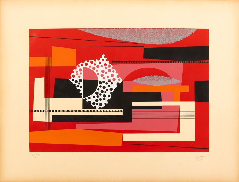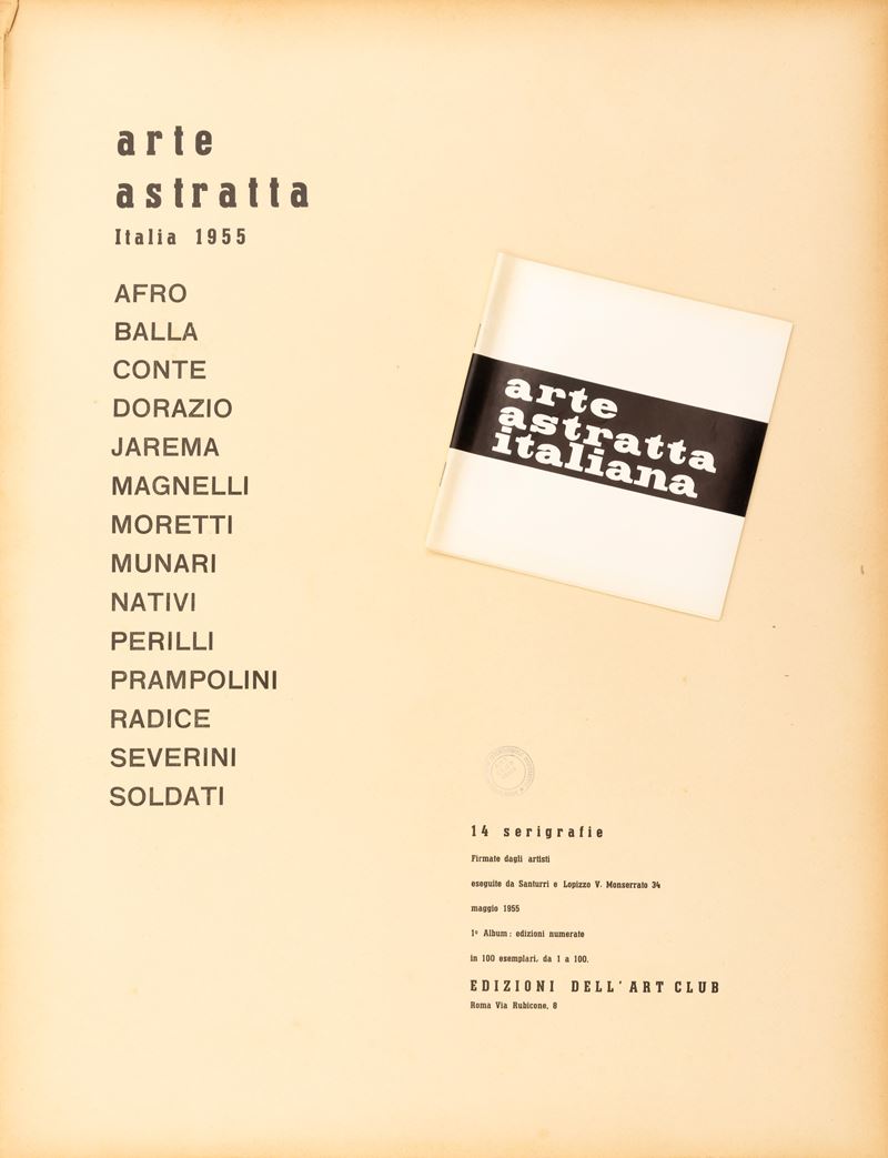 Le serigrafie sono di Afro, Balla, Conte, Dorazio, Jarema, Magnelli, Moretti, Munari, Nativi, Perilli, Prampolini, Radice, Severini, Soldati con l'aggiunta di 3 bozzetti originali relativi alle opere di Jarema, Moretti e Perilli