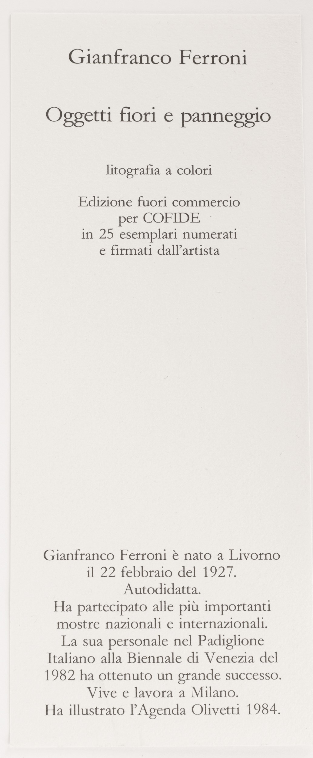 firmato in basso a destra, numerato in basso a sinistra