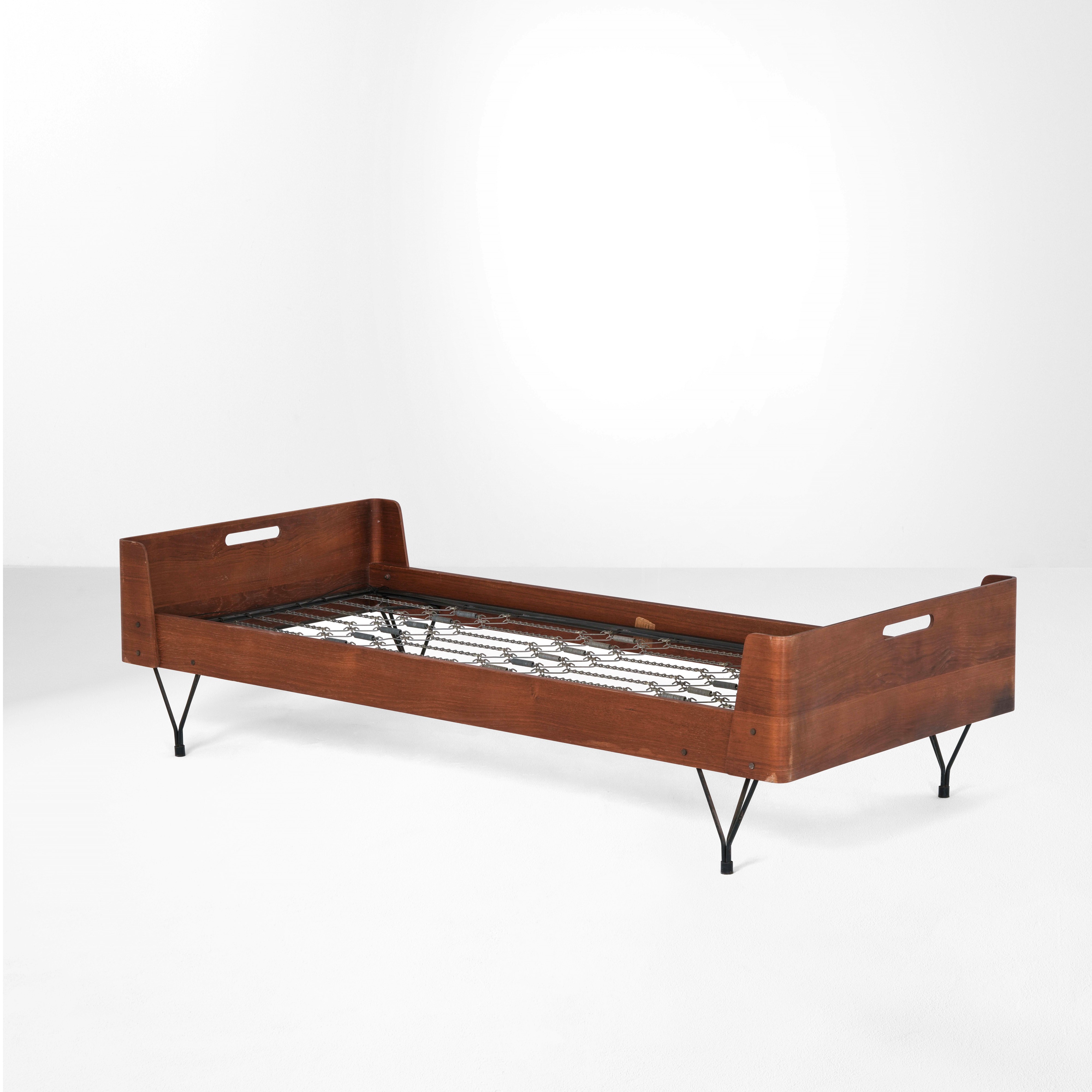 Struttura in legno, sostegni in metallo tubolare laccato e rete metallica.