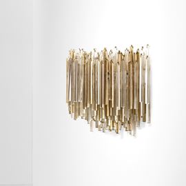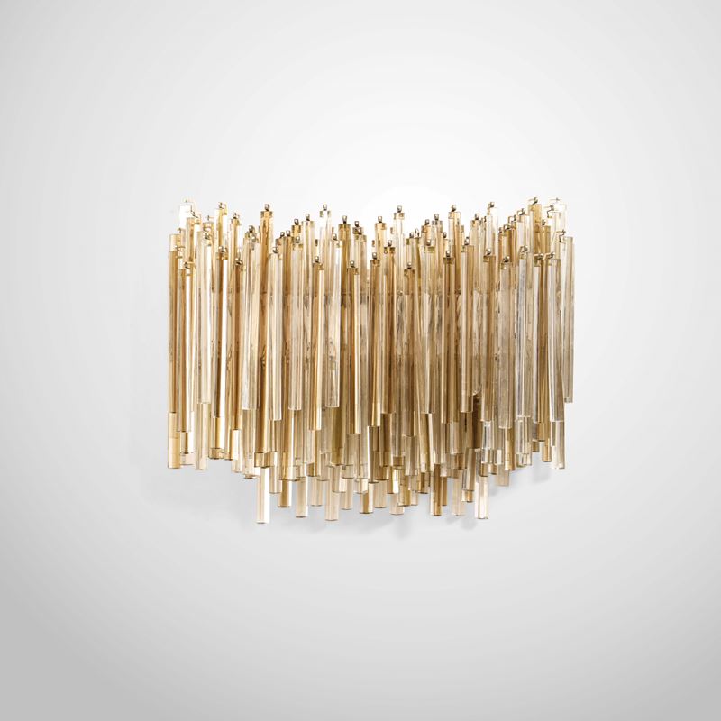 Struttura in metallo laccato ed elementi diffusore in vetro di Murano.