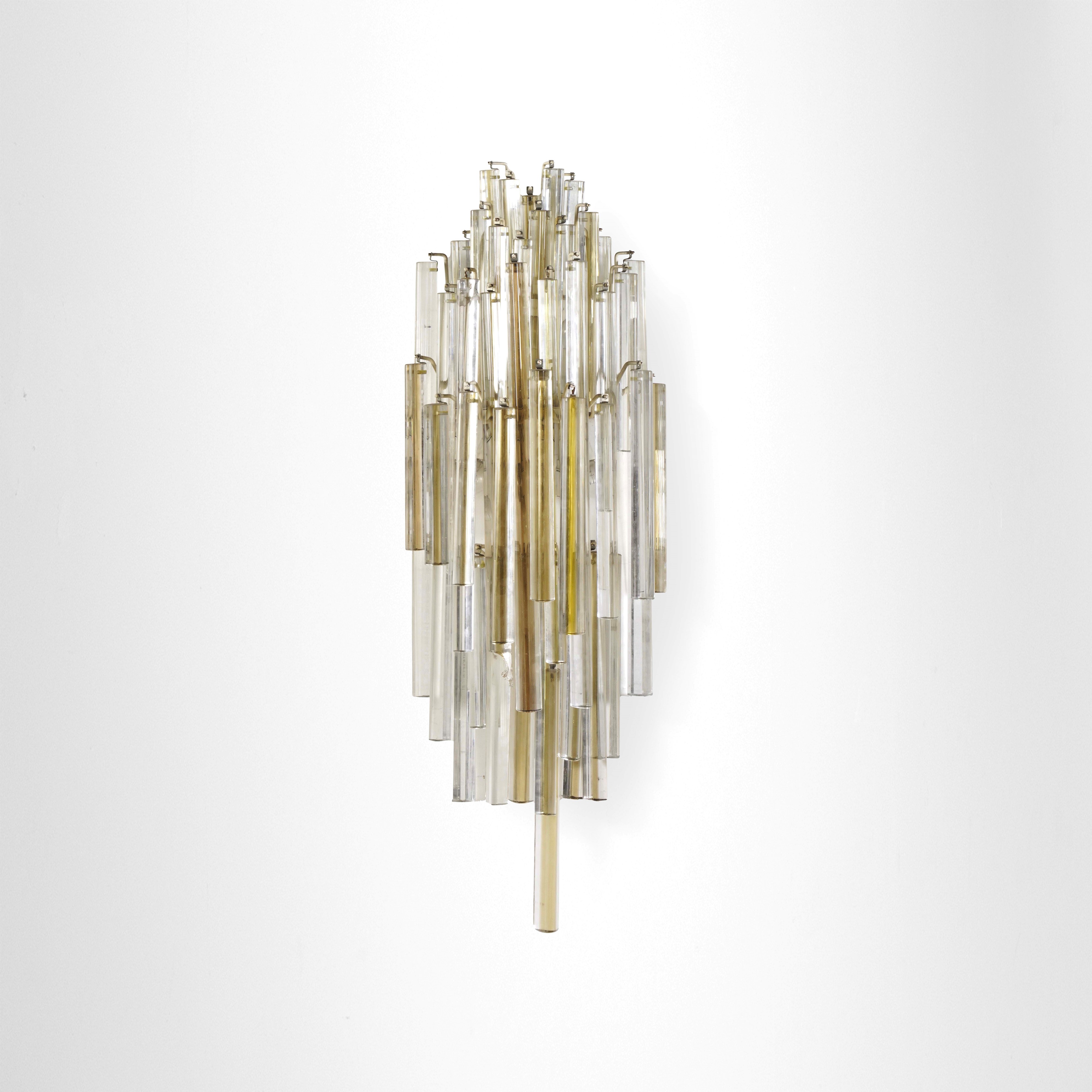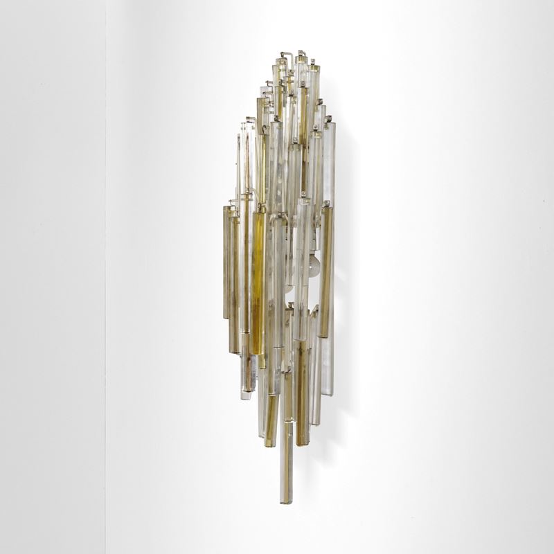 Struttura in metallo laccato ed elementi diffusore in vetro di Murano.