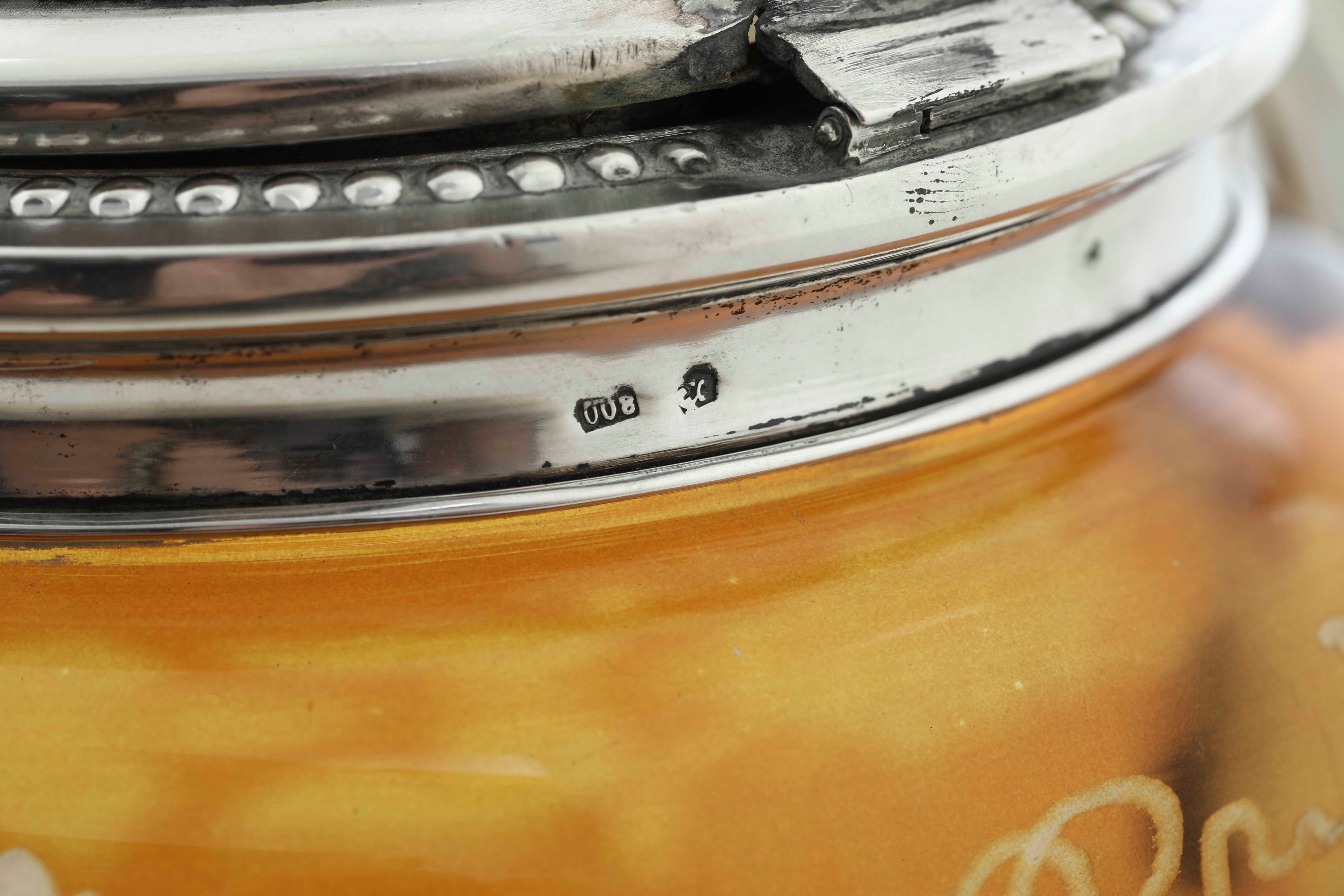 Biscottiera in argento e vetro molato. Argenteria italiana o tedesca del XX secolo.