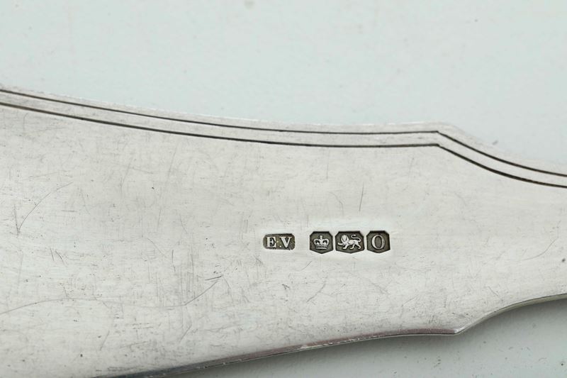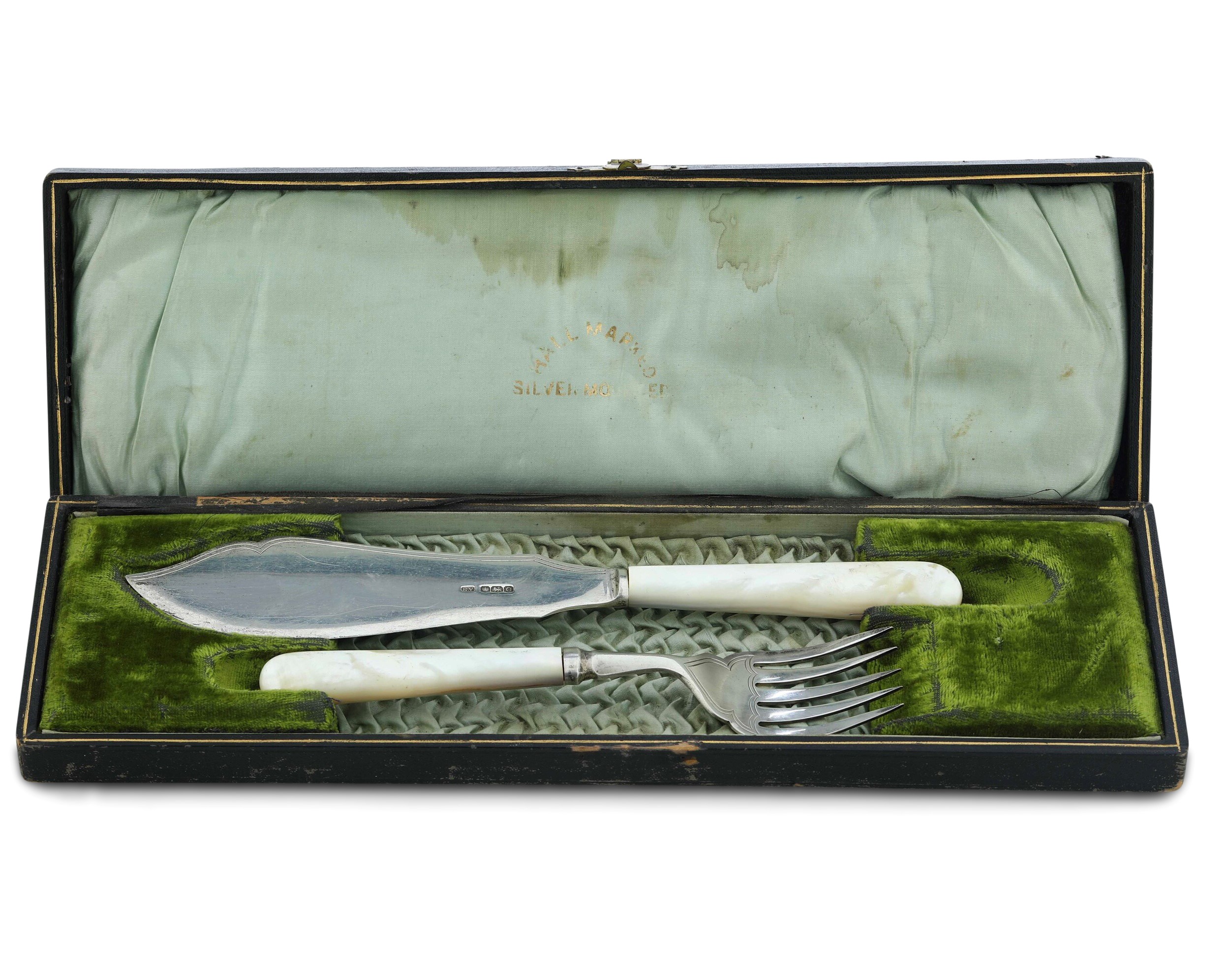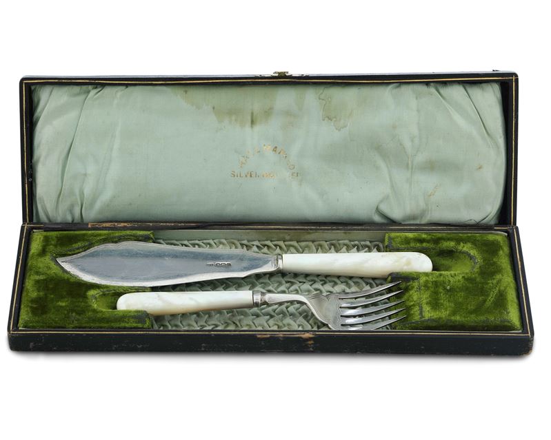 Due posate da portata da pesce. Città di Sheffield 1931, argentiere Edward Viner