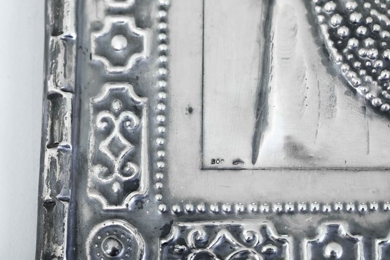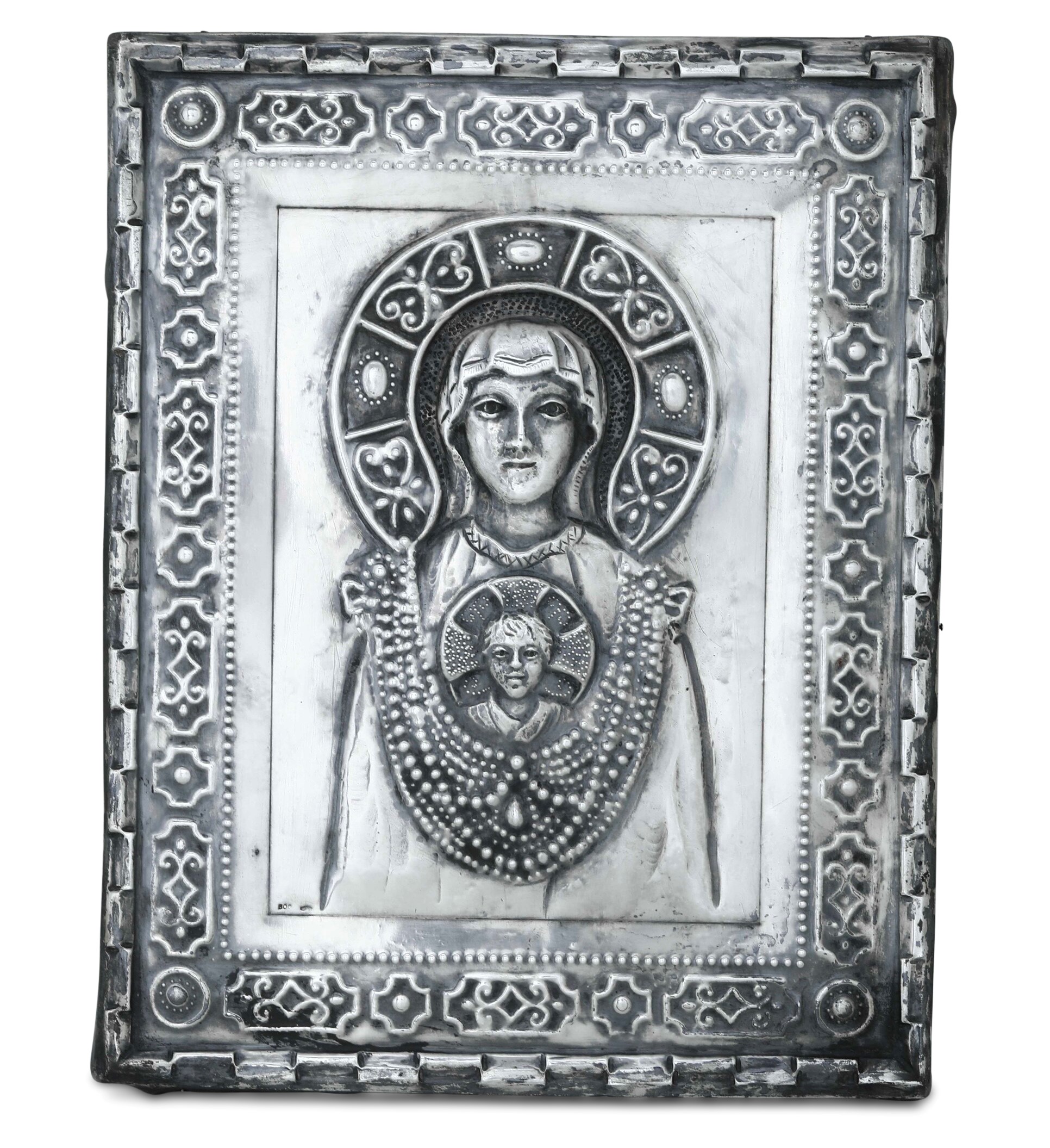 Icona in argento raffigurante Madonna con Bambino. Argenteria italiana della prima metà del XX secolo