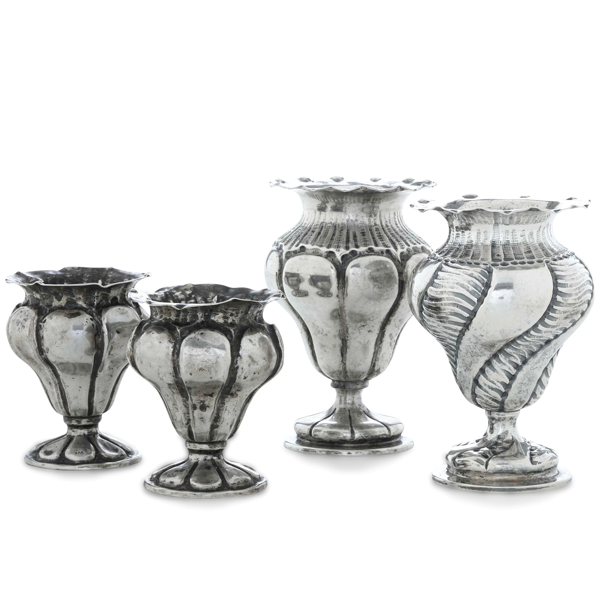 Lotto composto da una coppia di vasetti più altri due diversi tra loro. Argenteria italiana della prima metà del XX secolo