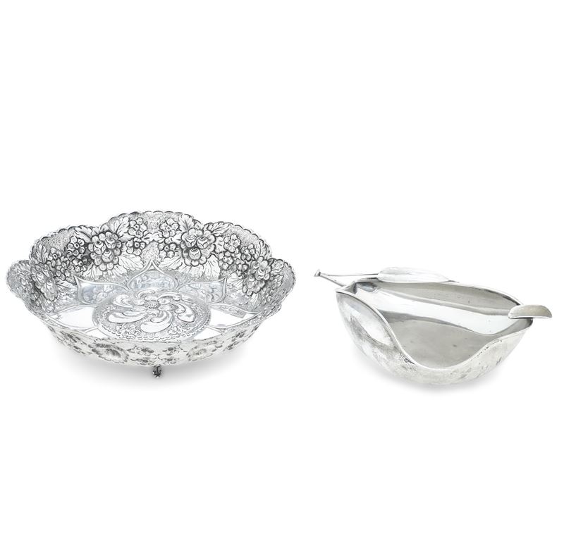 Lotto di un posacenere a forma di pera (Italia, XX secolo) e un centrotavola (XX secolo)