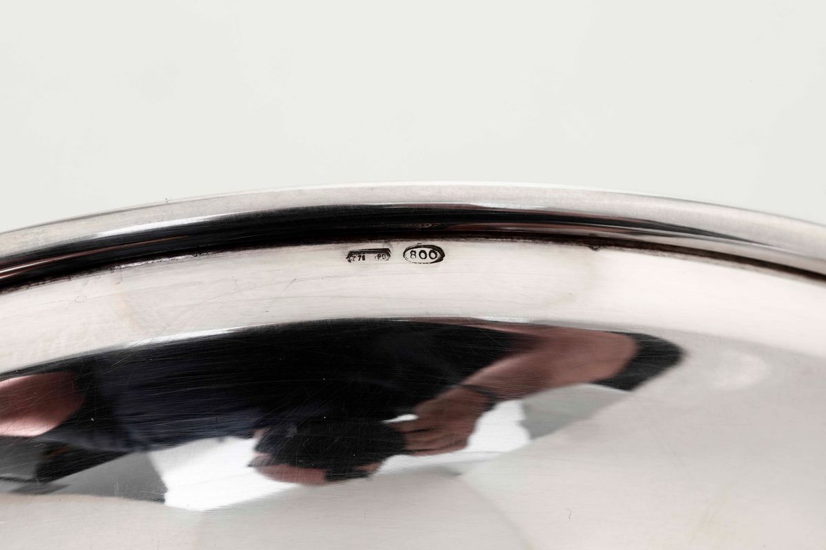 Portabottiglie in argento. Argenteria italiana del XX secolo. Argentiere Corrado Lotti, Padova