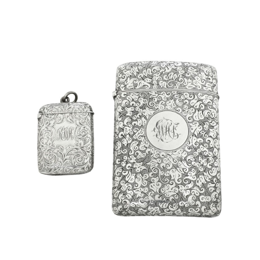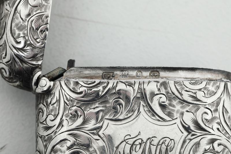 Portafiammiferi e portasigarette. Uno Londra 1885 e uno Birmingham 1888