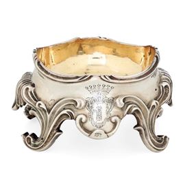 Saliera. Roma, seconda metà del XVIII secolo. Marchio dell'argentiere consunto di difficile lettura