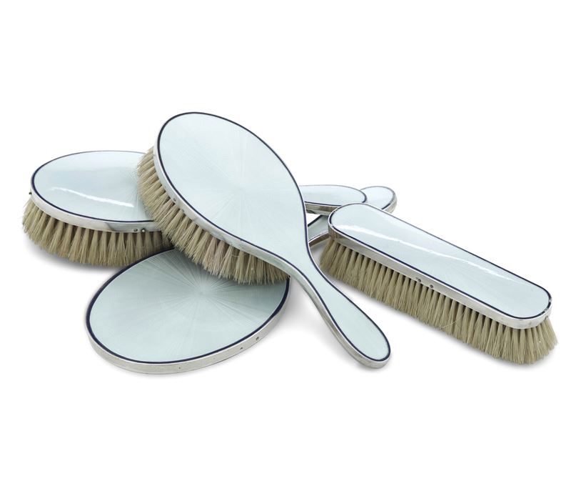 Set di spazzole con montatura in argento. Francia XX secolo