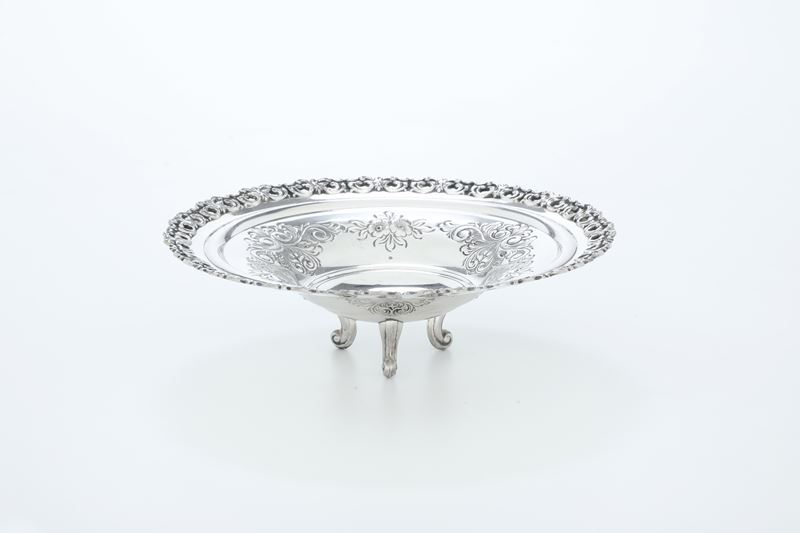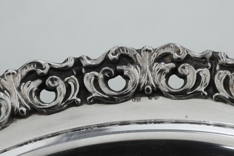 Vassoio centrotavola. Argenteria siciliana del XX secolo, argentiere Siddiolo Giacomo, Palermo
