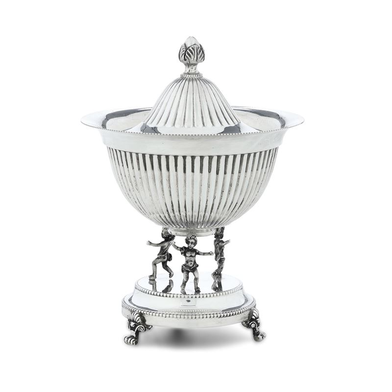 Zuccheriera con putti. Argenteria fiorentina del XX secolo, argentiere Bruno Bausi