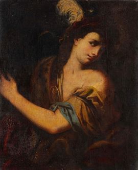 Scuola del XVII secolo Figura di giovane con cappello piumato