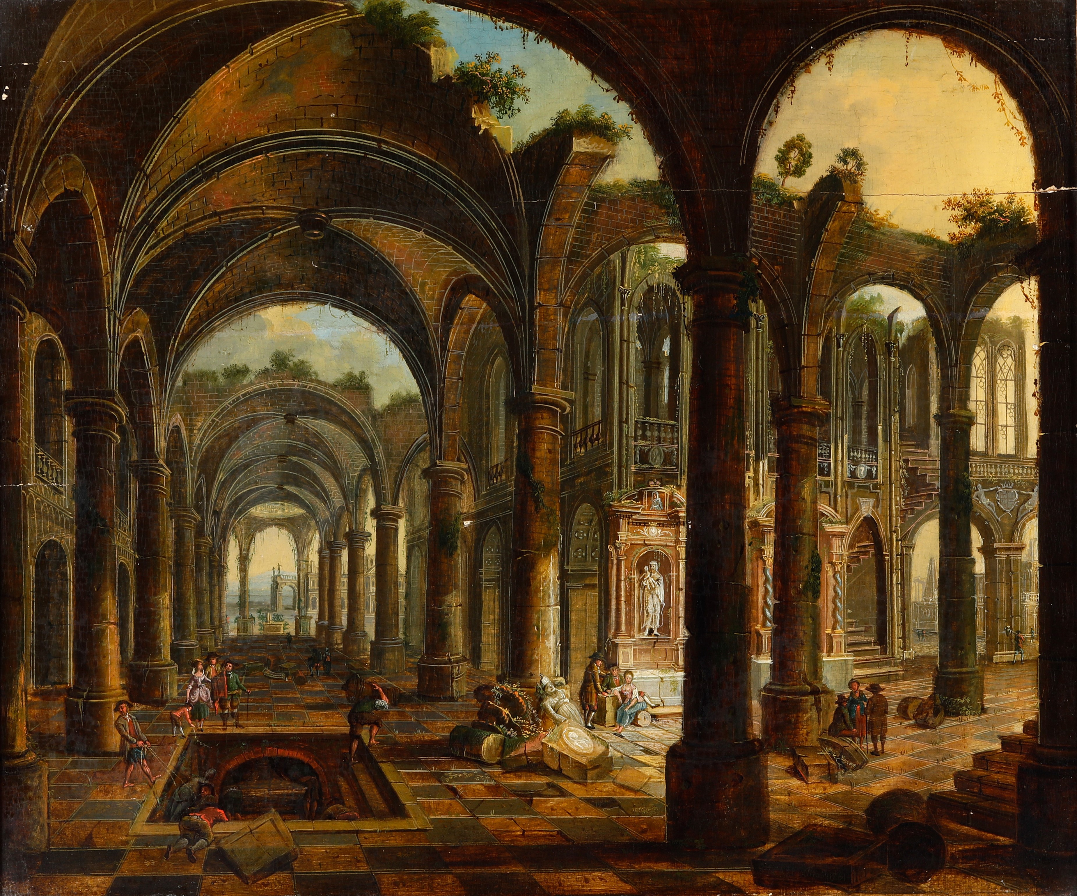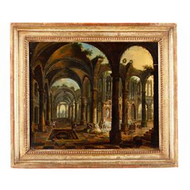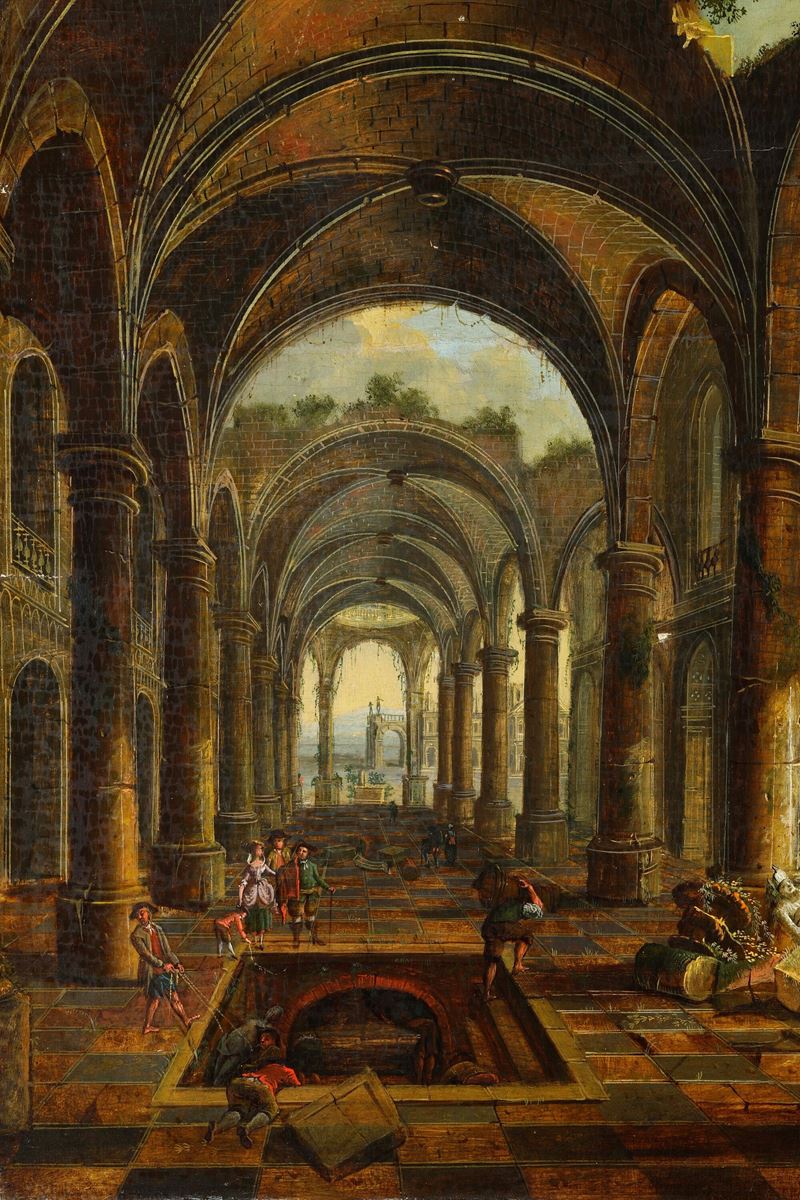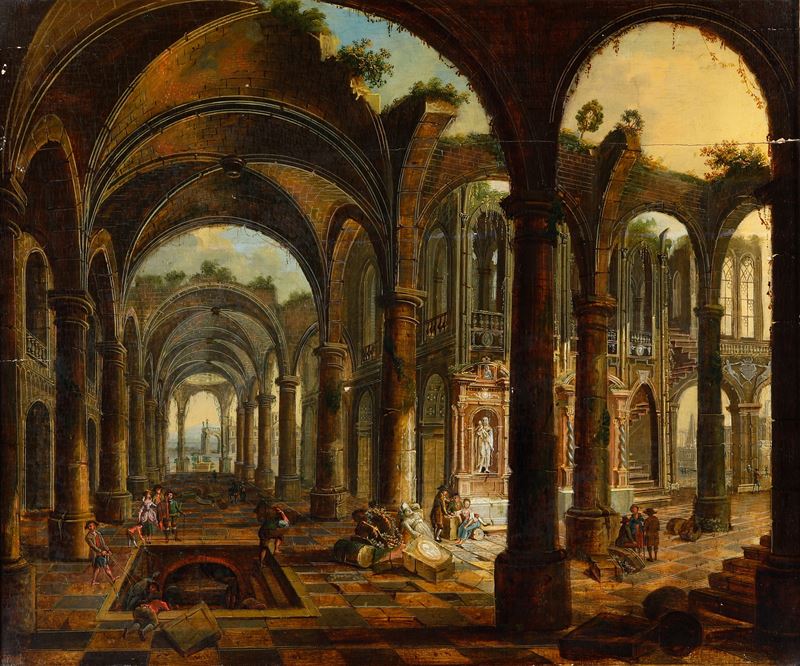 Scuola della fine del XVIII-inizi del XIX secolo Capriccio architettonico con figure