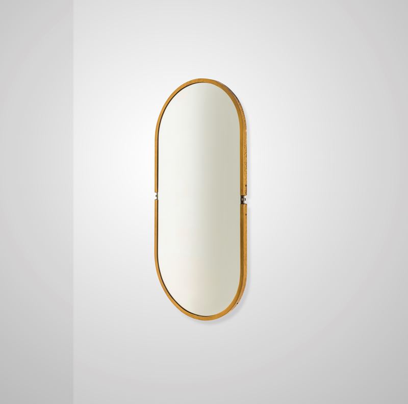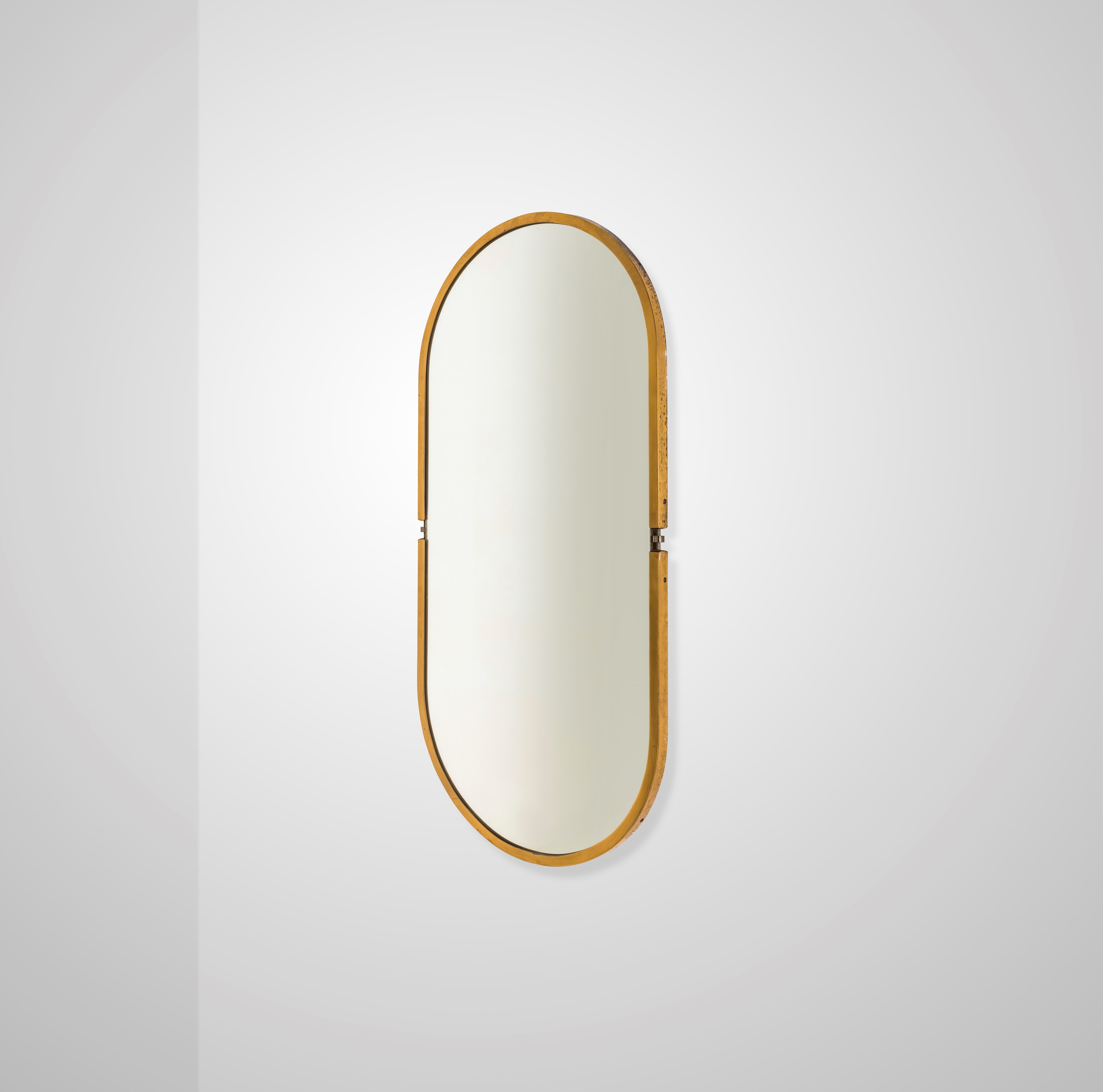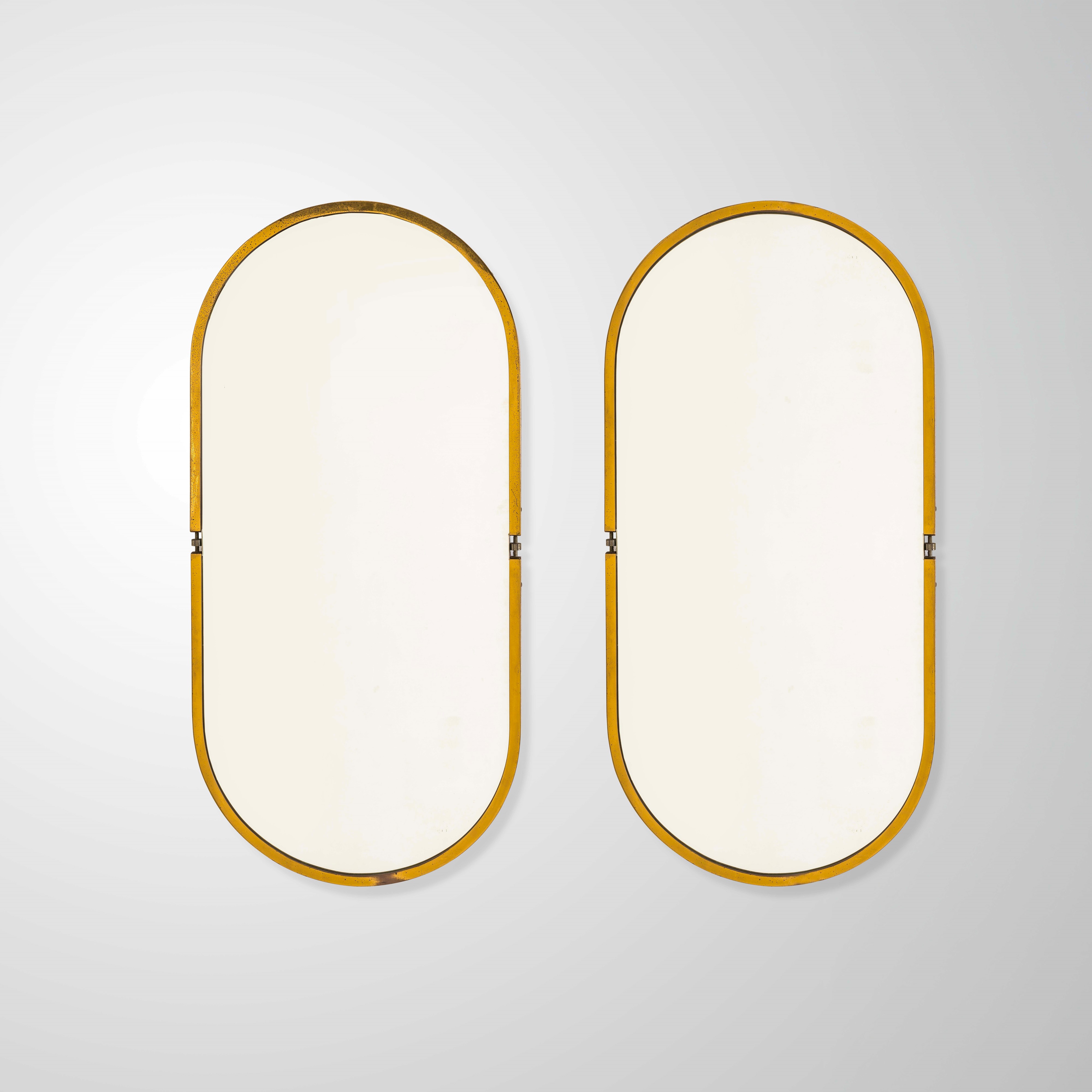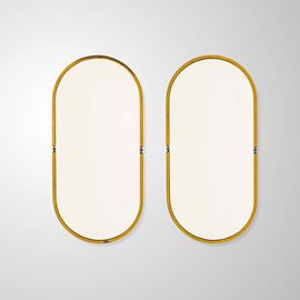 Specchi in vetro con profilo in ottone e dettagli in metallo nichelato.