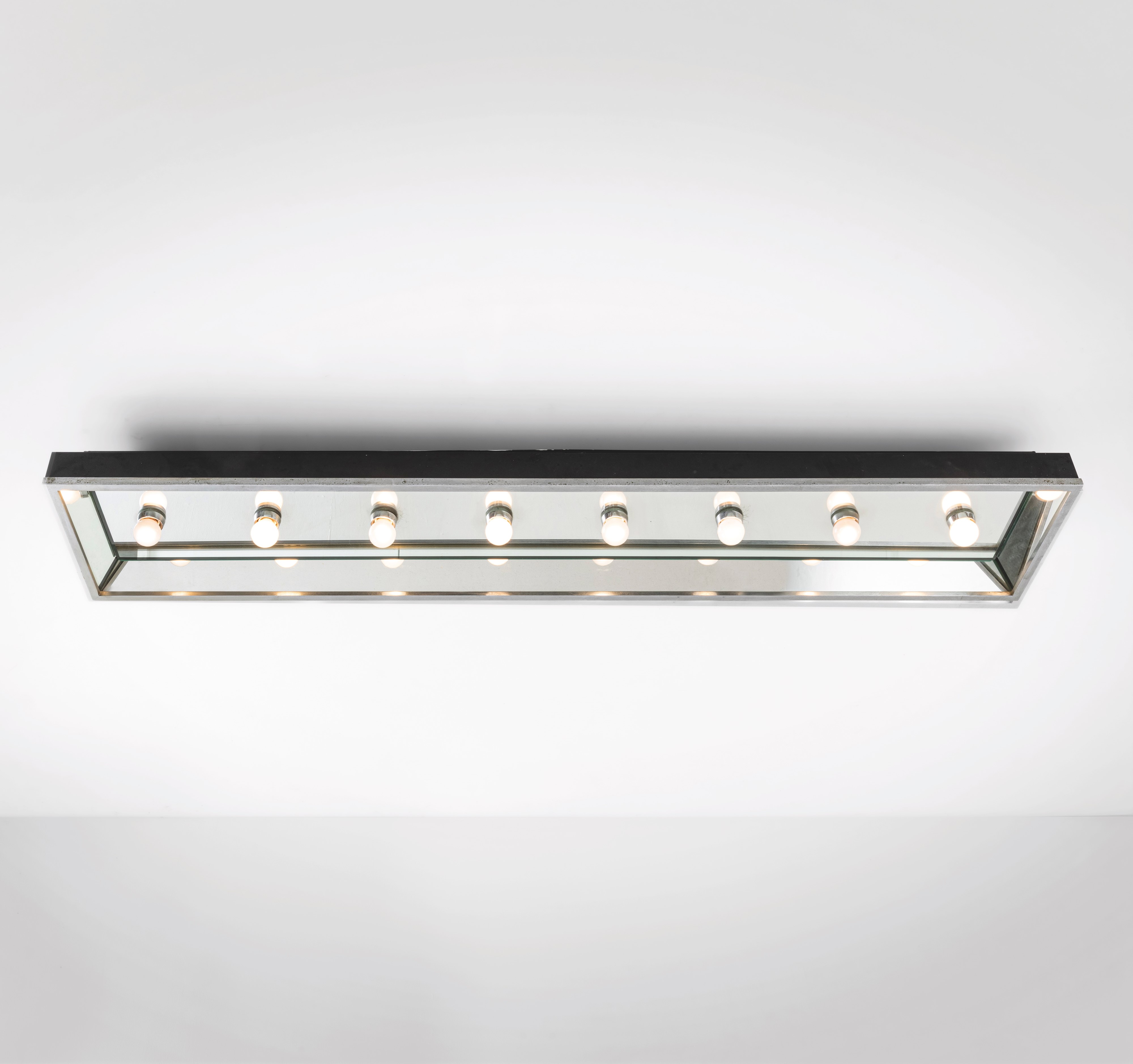Struttura in metallo, metallo laccato e cristallo specchiato molato.