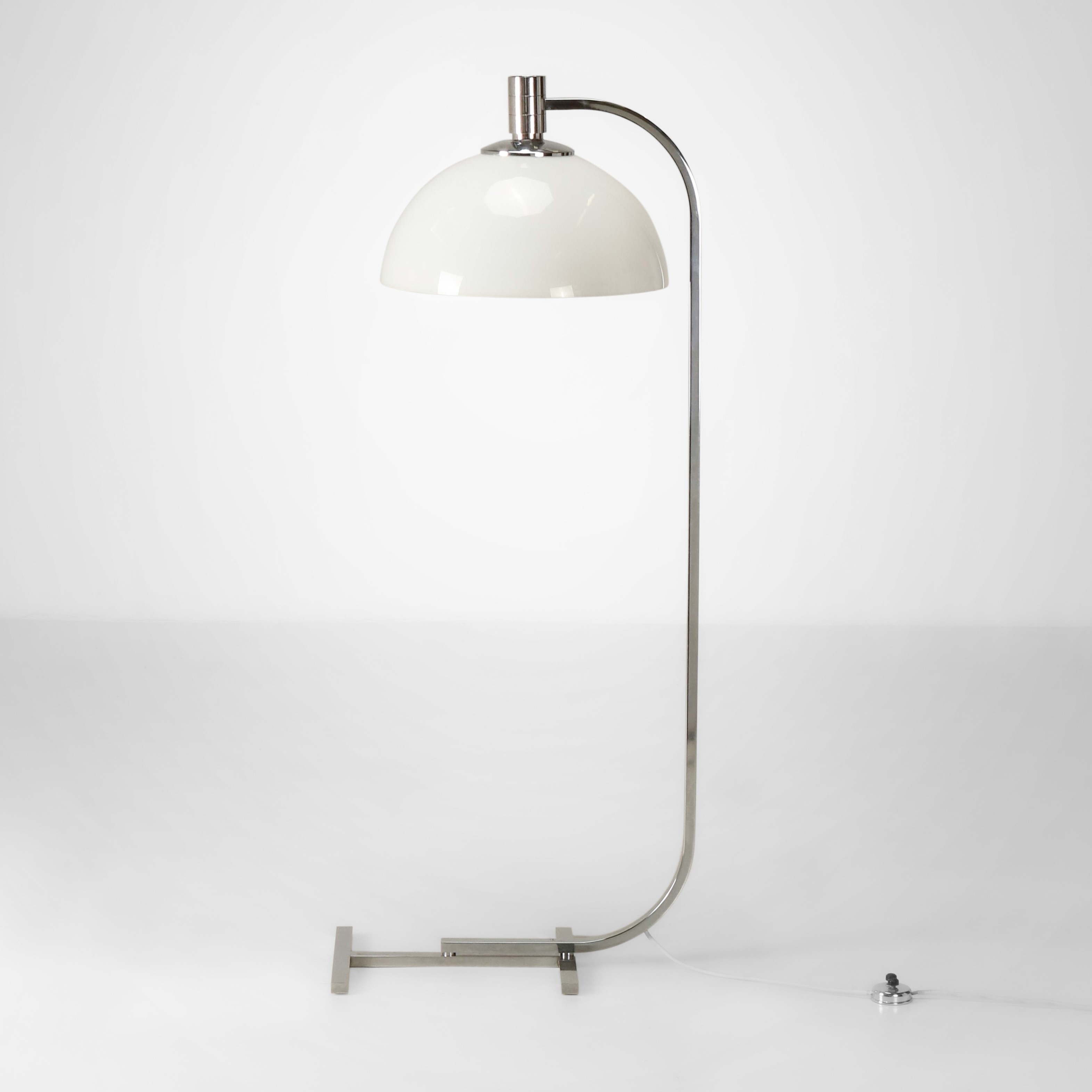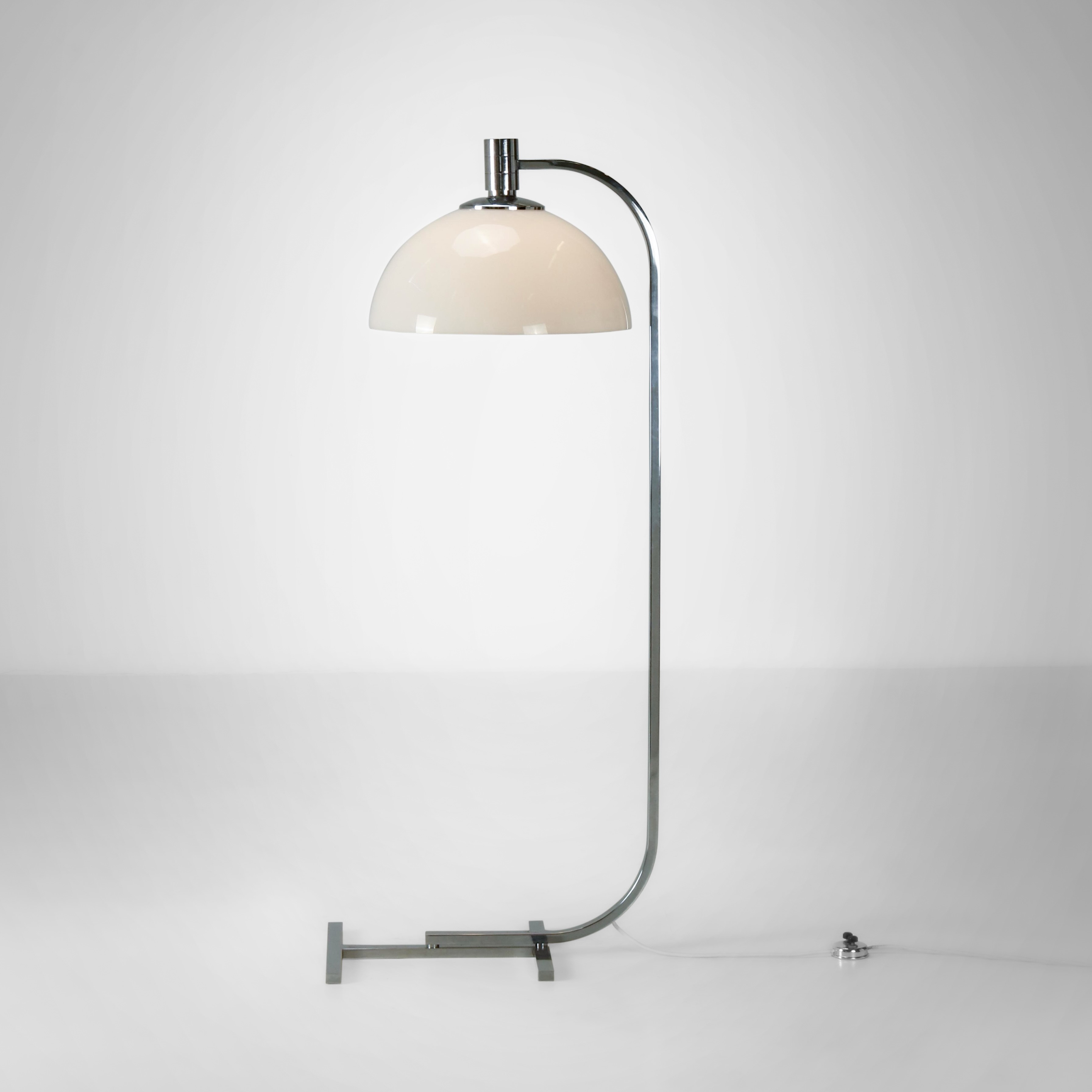 Struttura in metallo cromato e diffusore in vetro opalino.