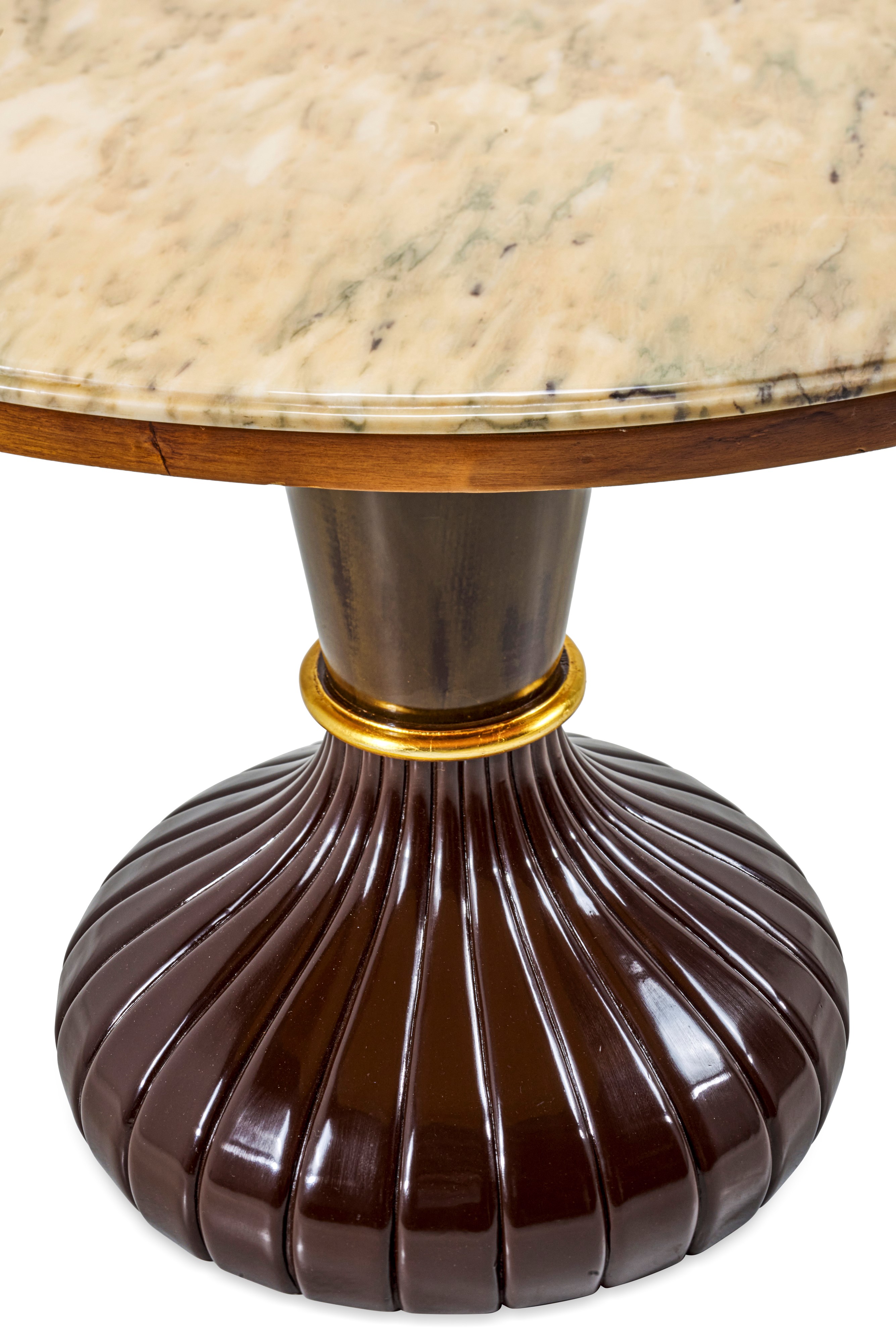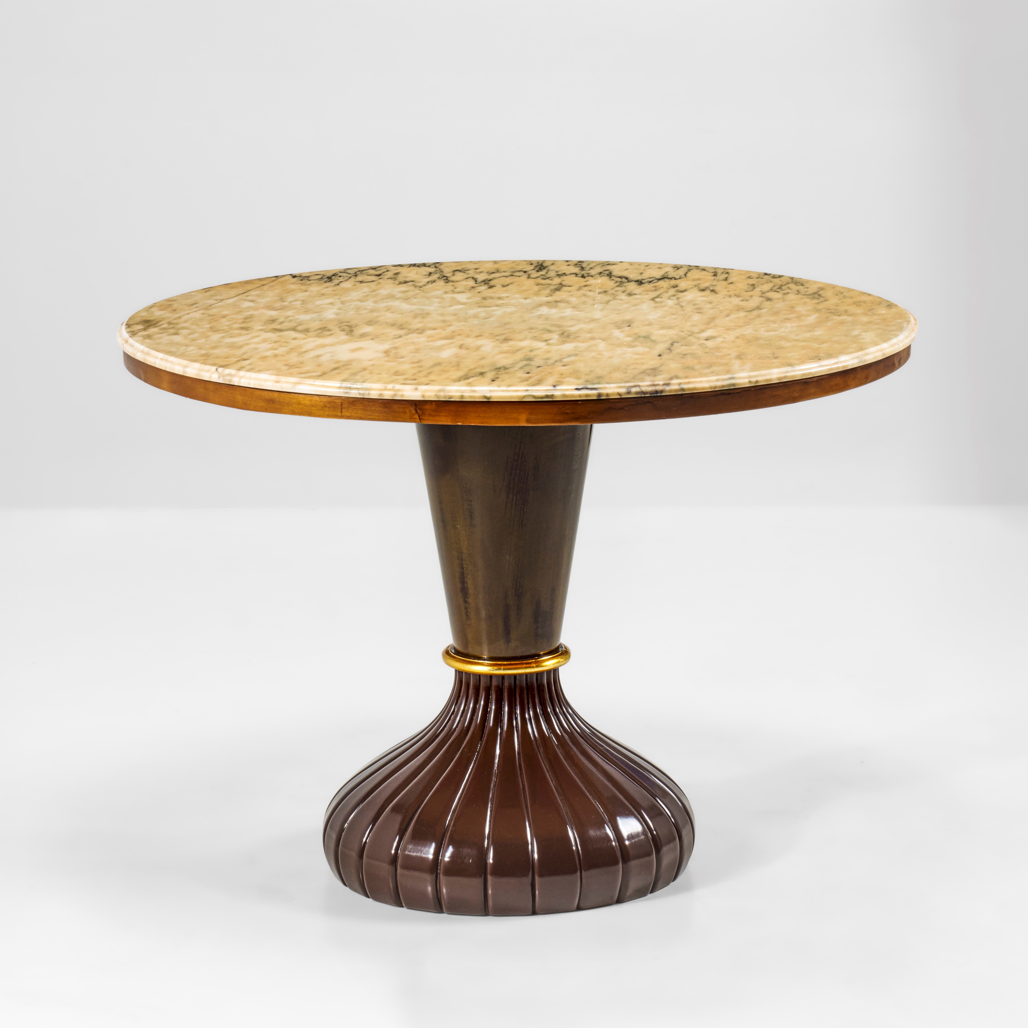 Struttura in legno e legno dorato. Piano in marmo.