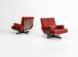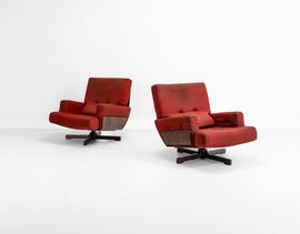 Struttura in compensato curvato e rivestimenti in tessuto. Sostegni in metallo.