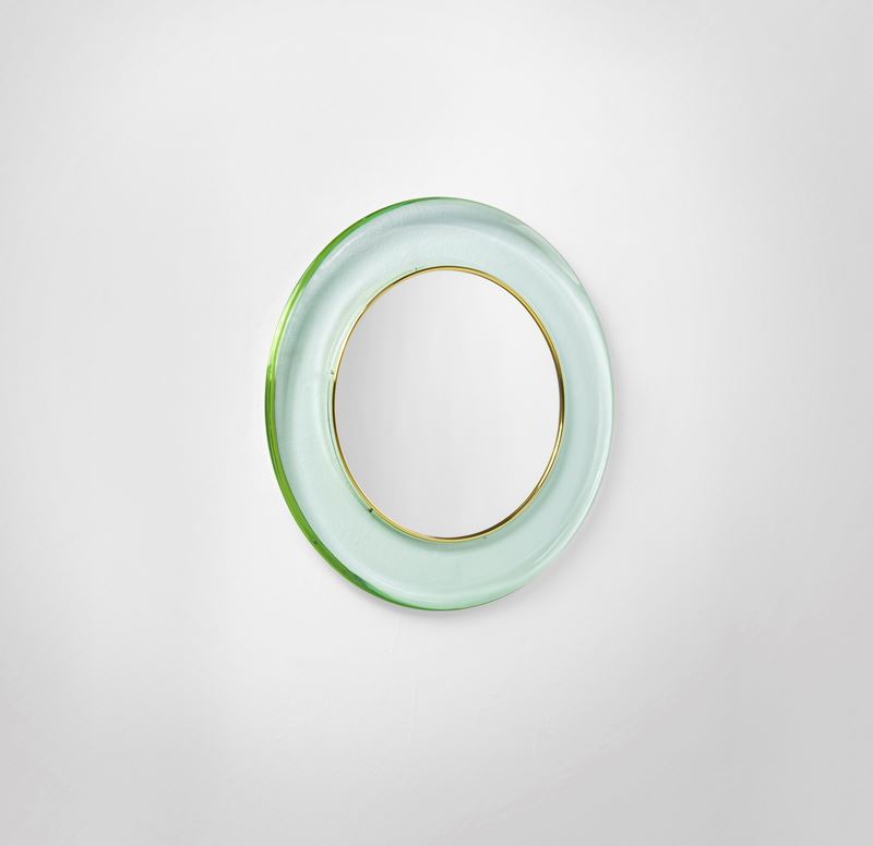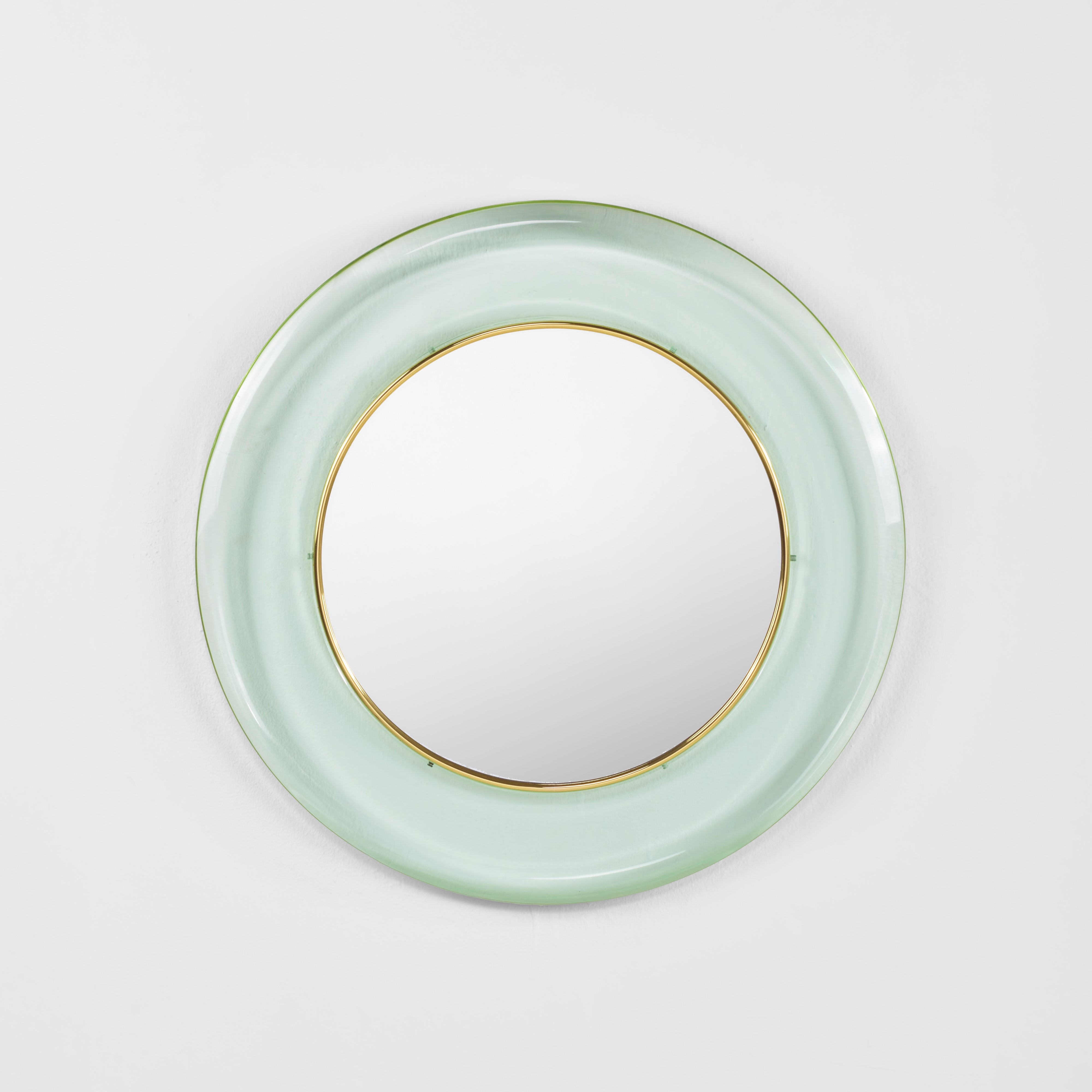 Struttura in ottone con cornice in cristallo molato di forte spessore.