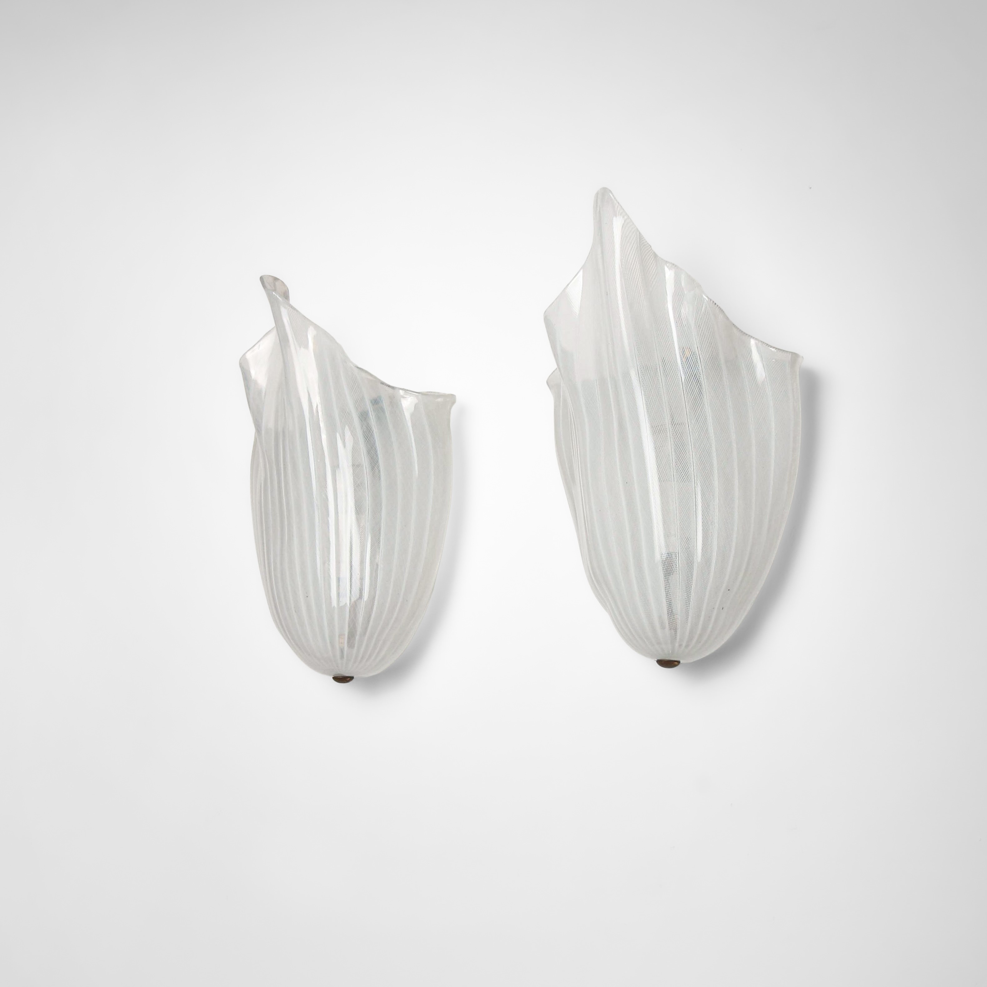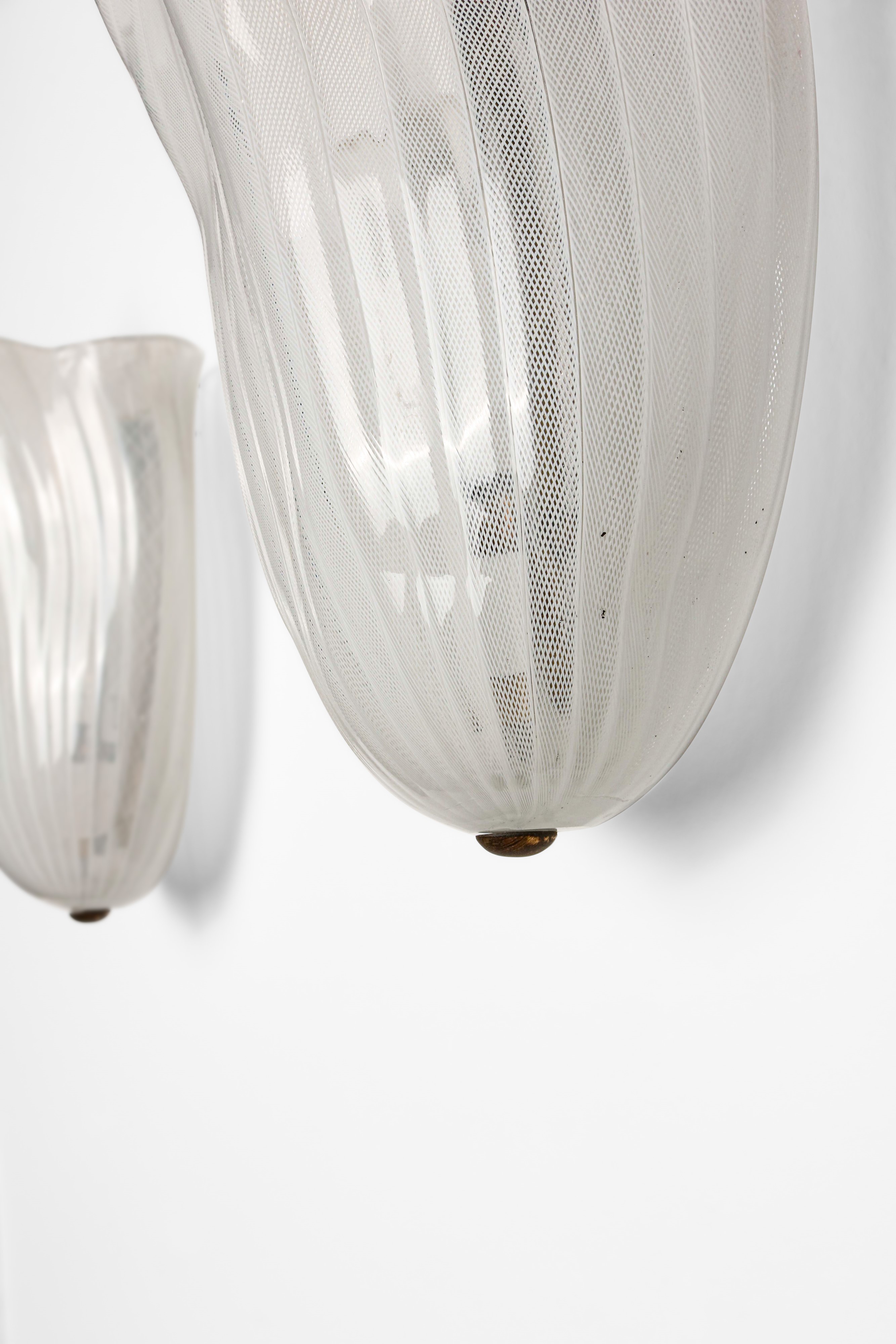 Diffusore in vetro di Murano a reticello. Sostegni e dettagli in ottone.