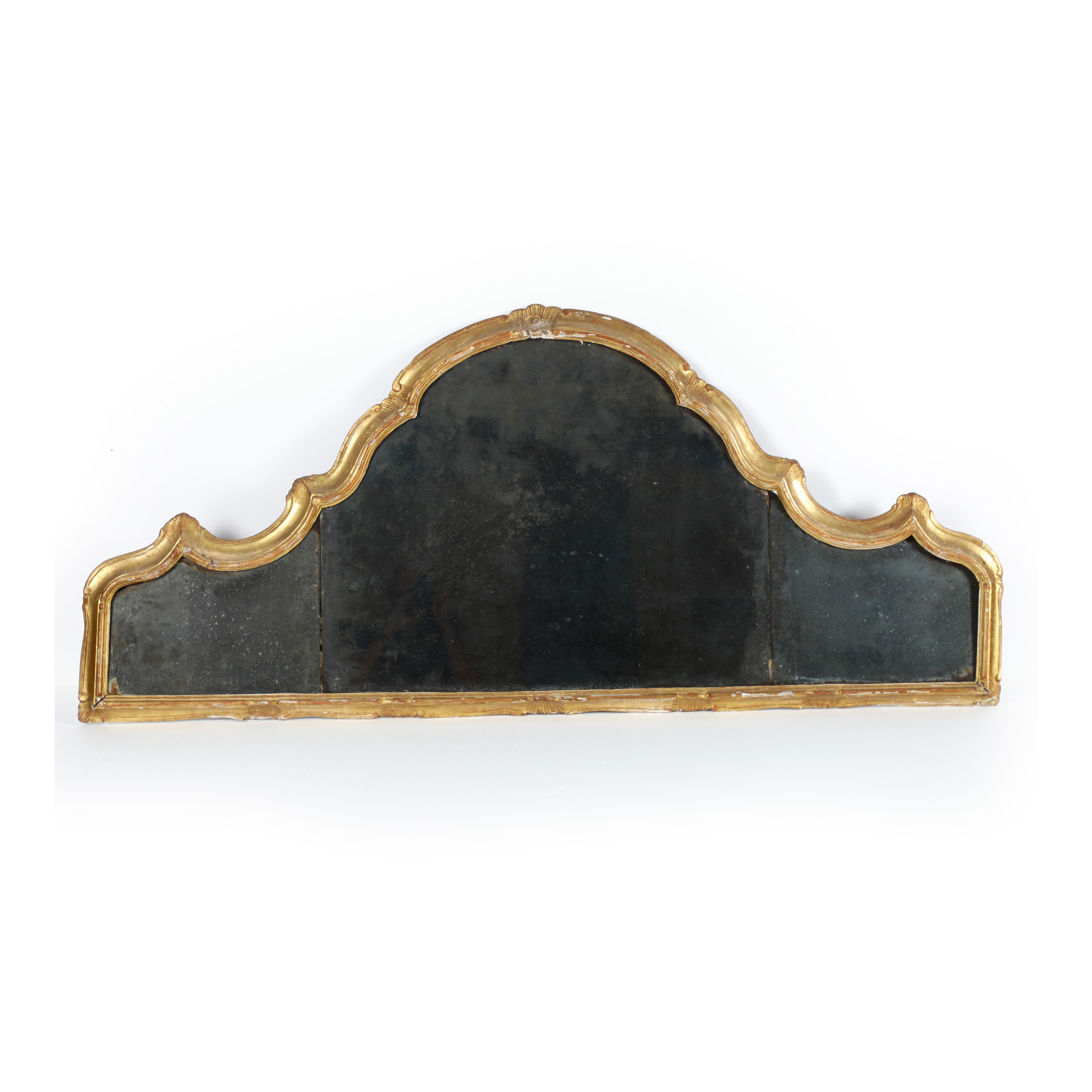 Legno intagliato e dorato. Sagomata, con bordo modanato decorato a piccole volute e pellacce