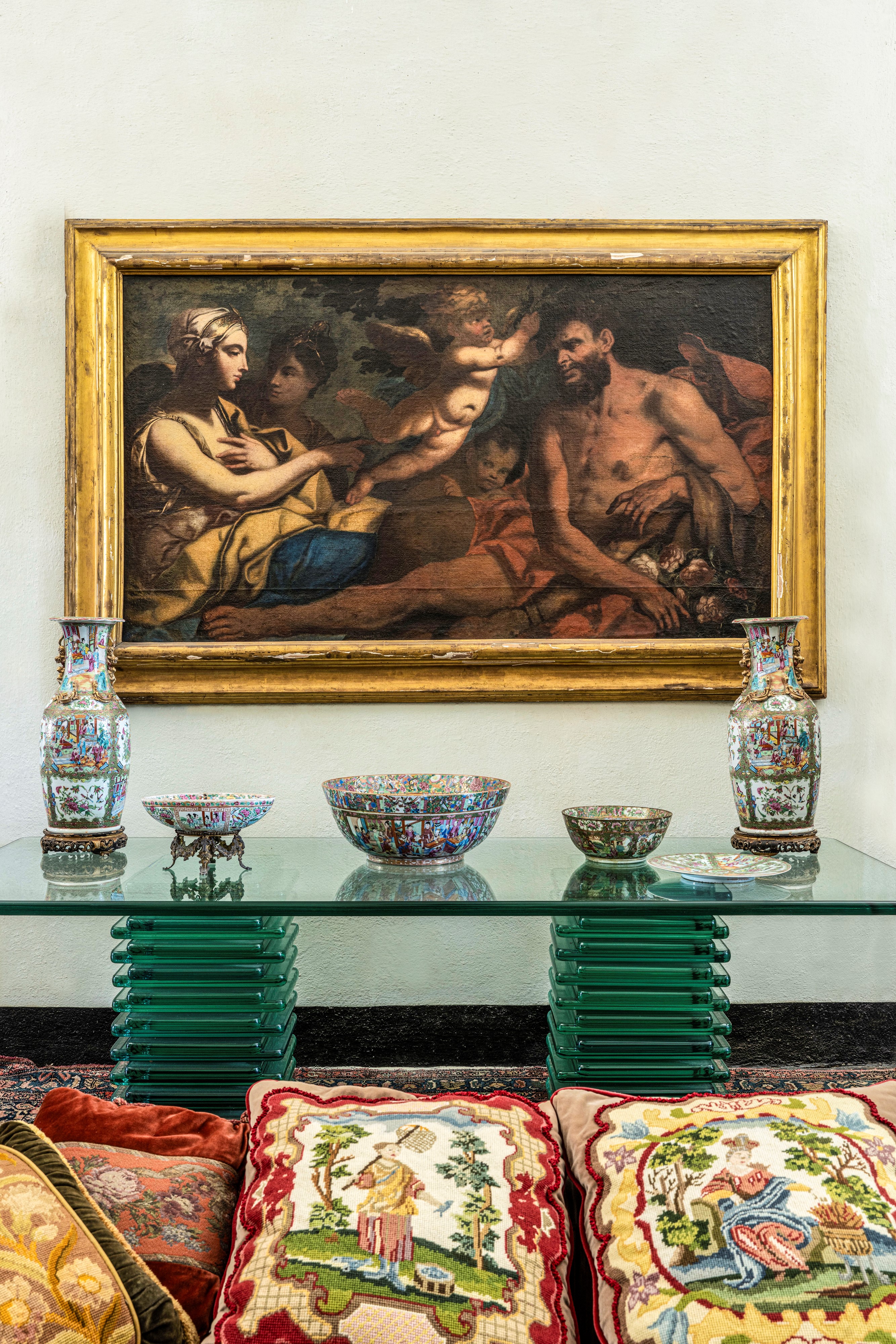 Ciotola in porcellana raffigurante scena di corte entro riserva con decori a motivi floreali con montatura in bronzo, Canton, Cina, Dinastia Qing, XIX secolo