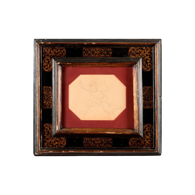 Cornice a cassetta in legno ebanizzato con racemi dorati. Toscana, XVII secolo