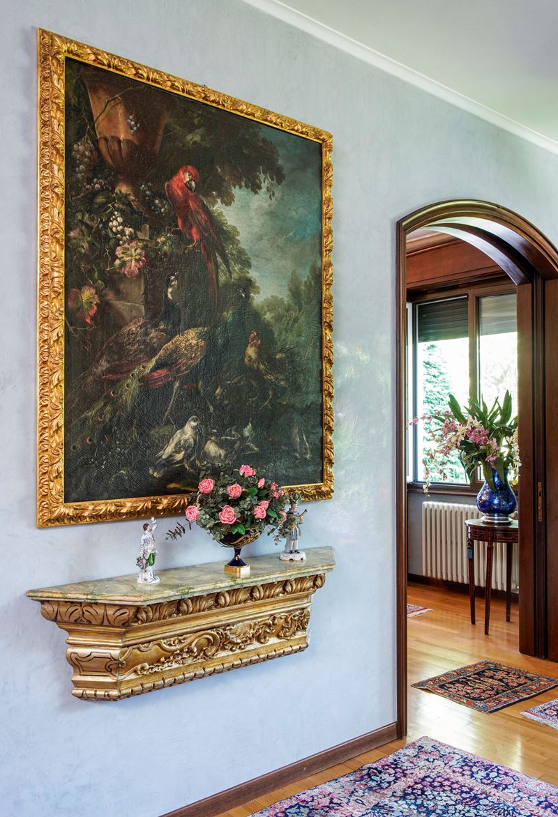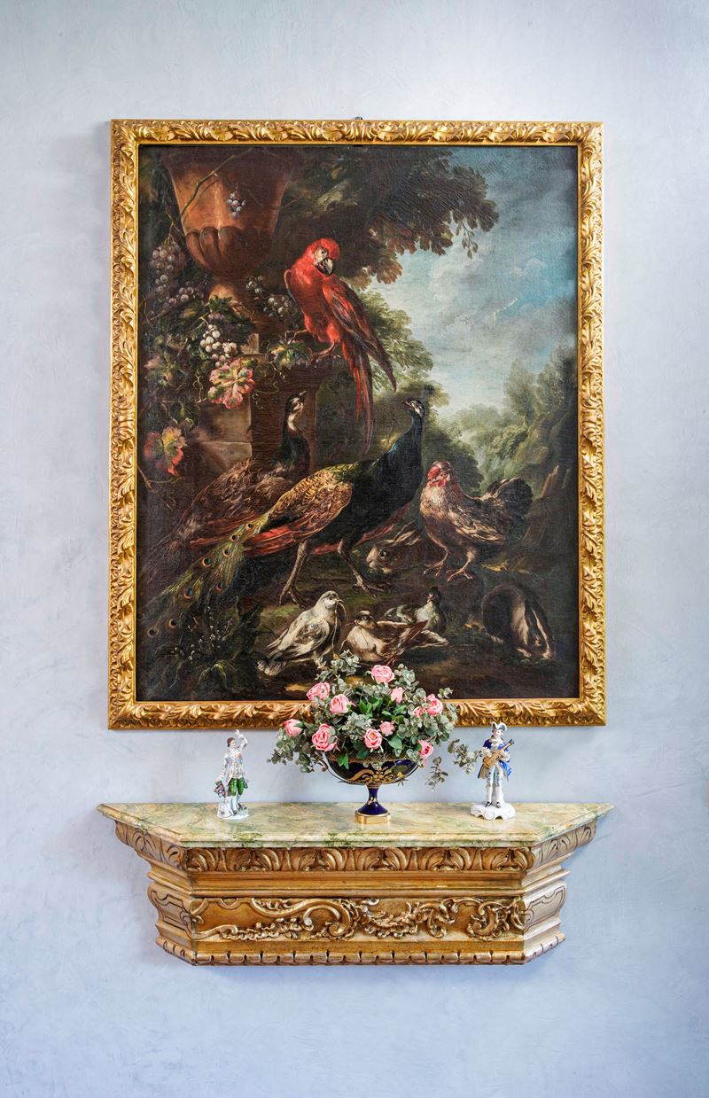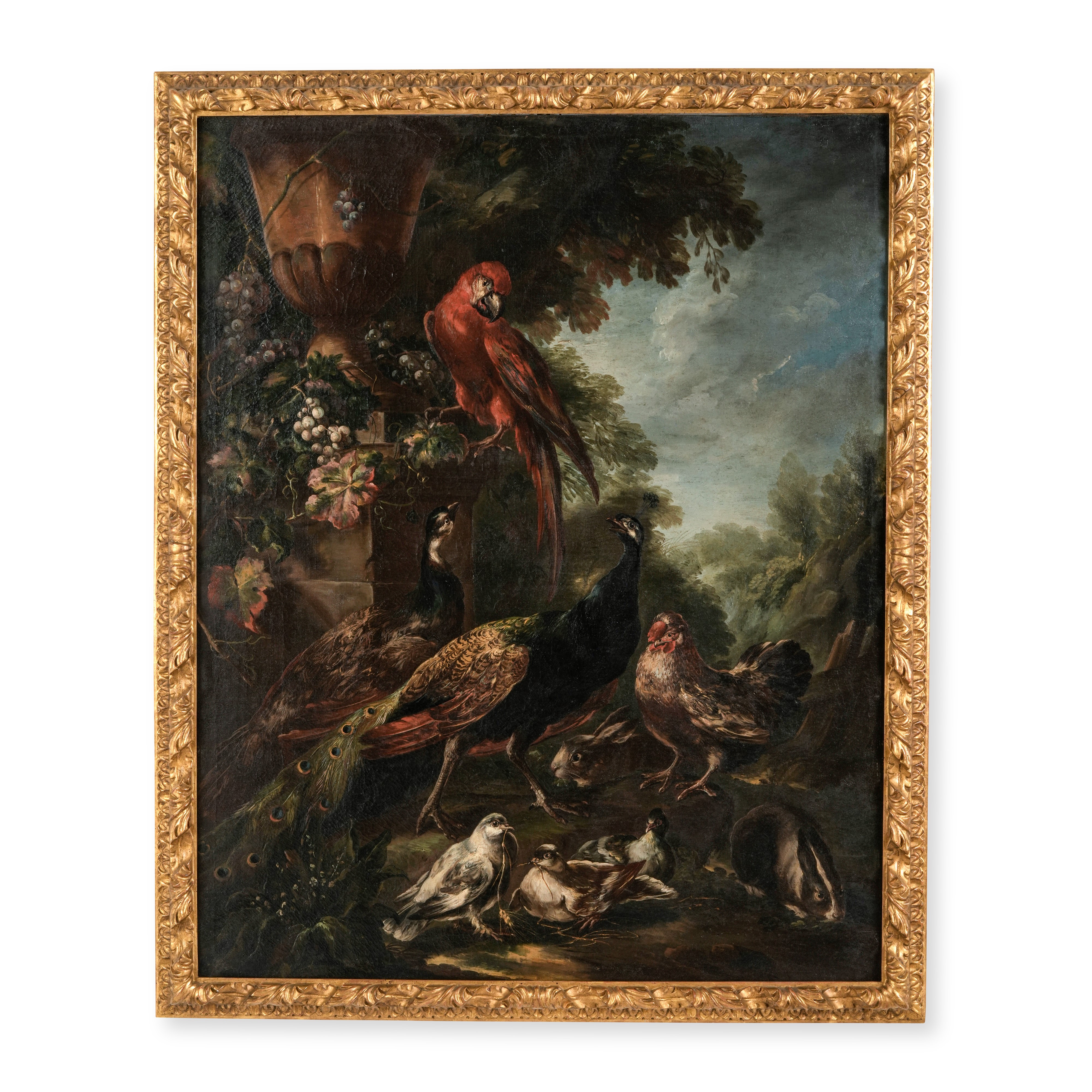Paesaggio con pappagallo, pavoni, gallinacei e conigli