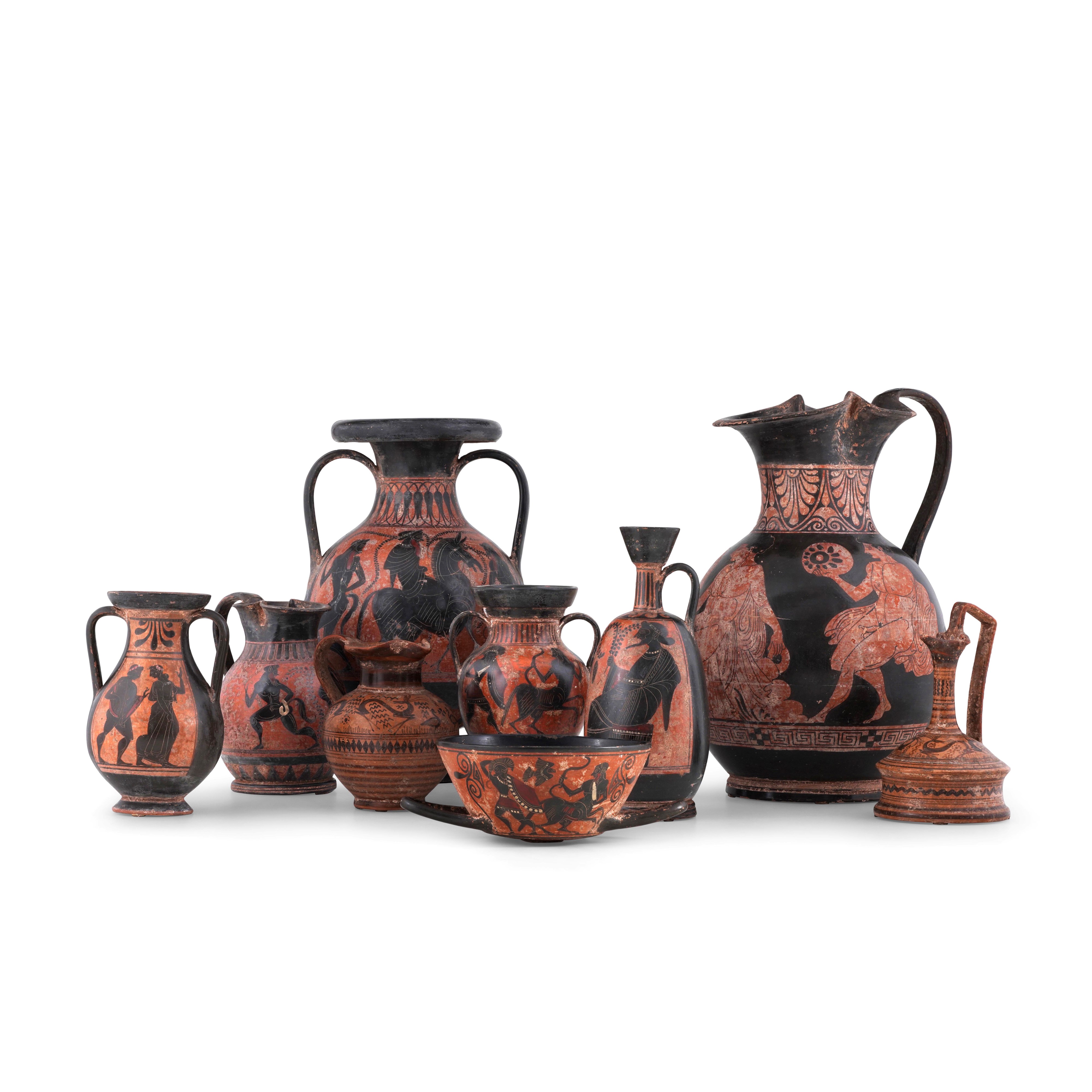 Nove diversi contenitori di ispirazione greco-etrusca.