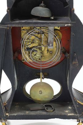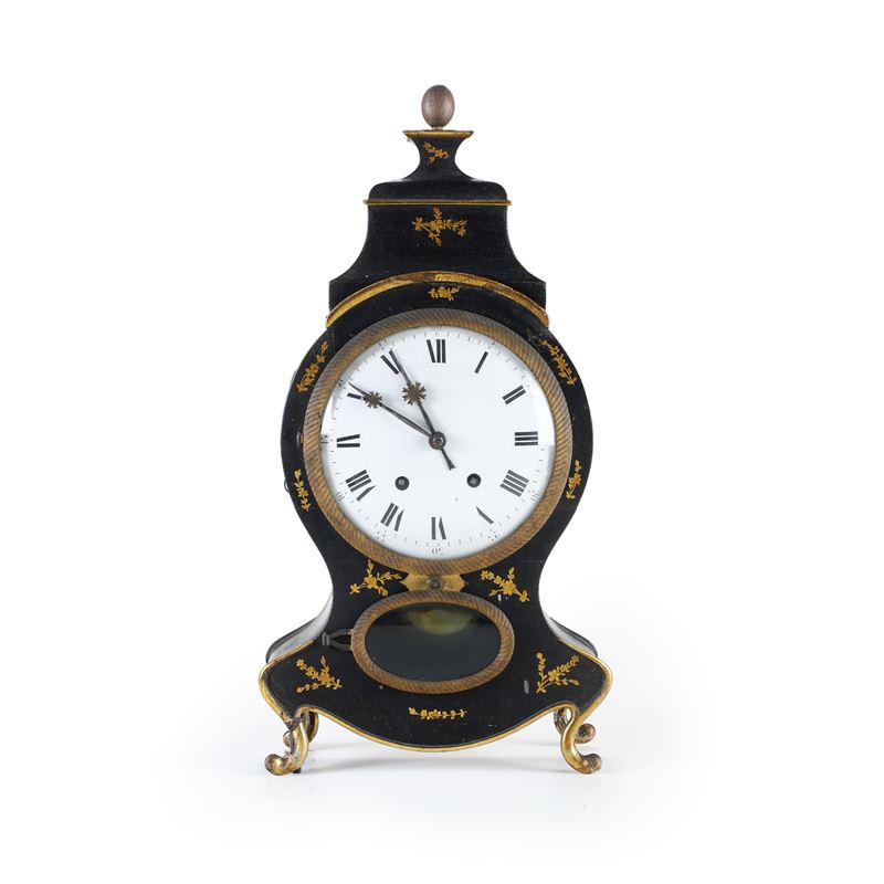 Cassa laccata a fondo nero con elementi decorativi dorati