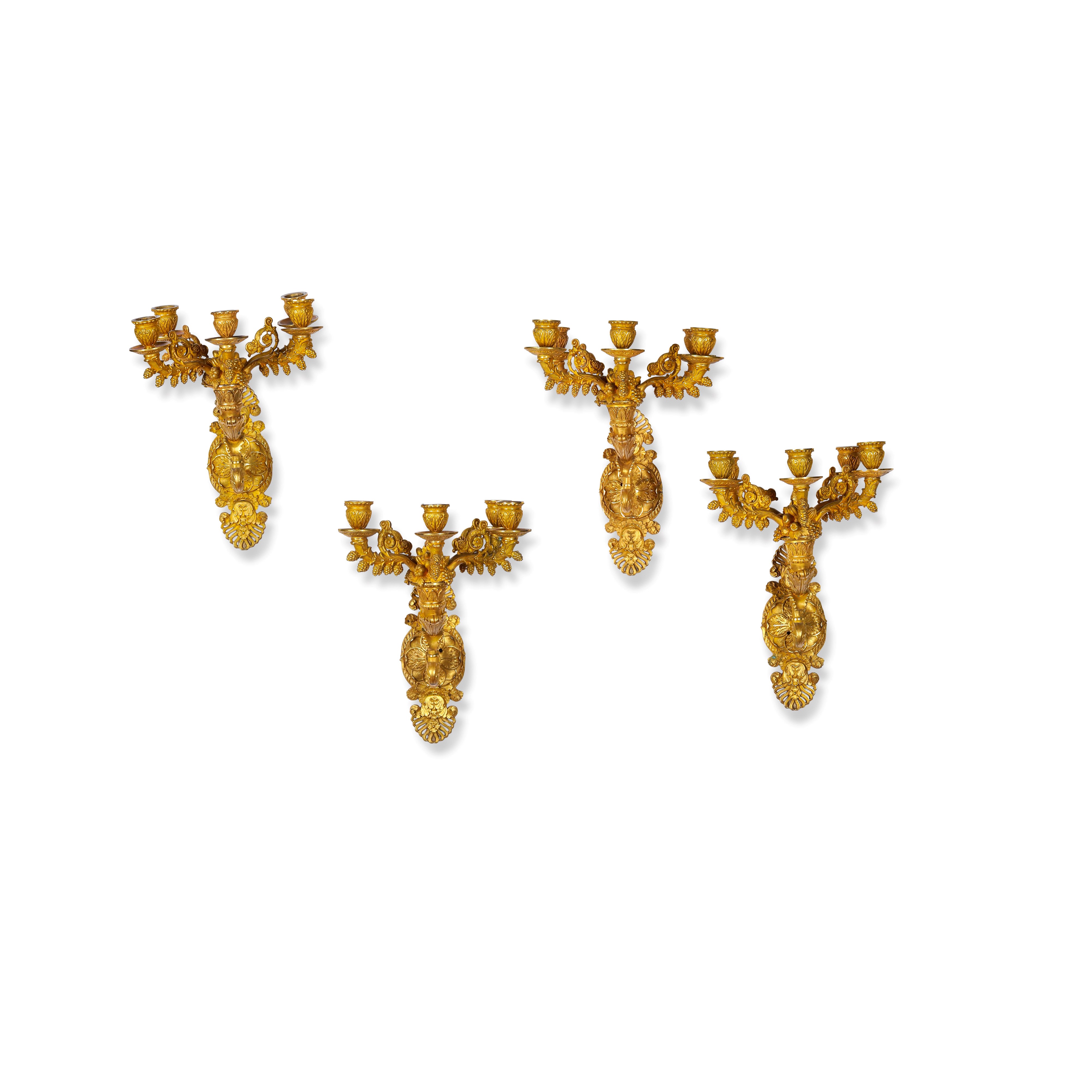 Quattro appliques a cinque luci. Francia, XIX secolo