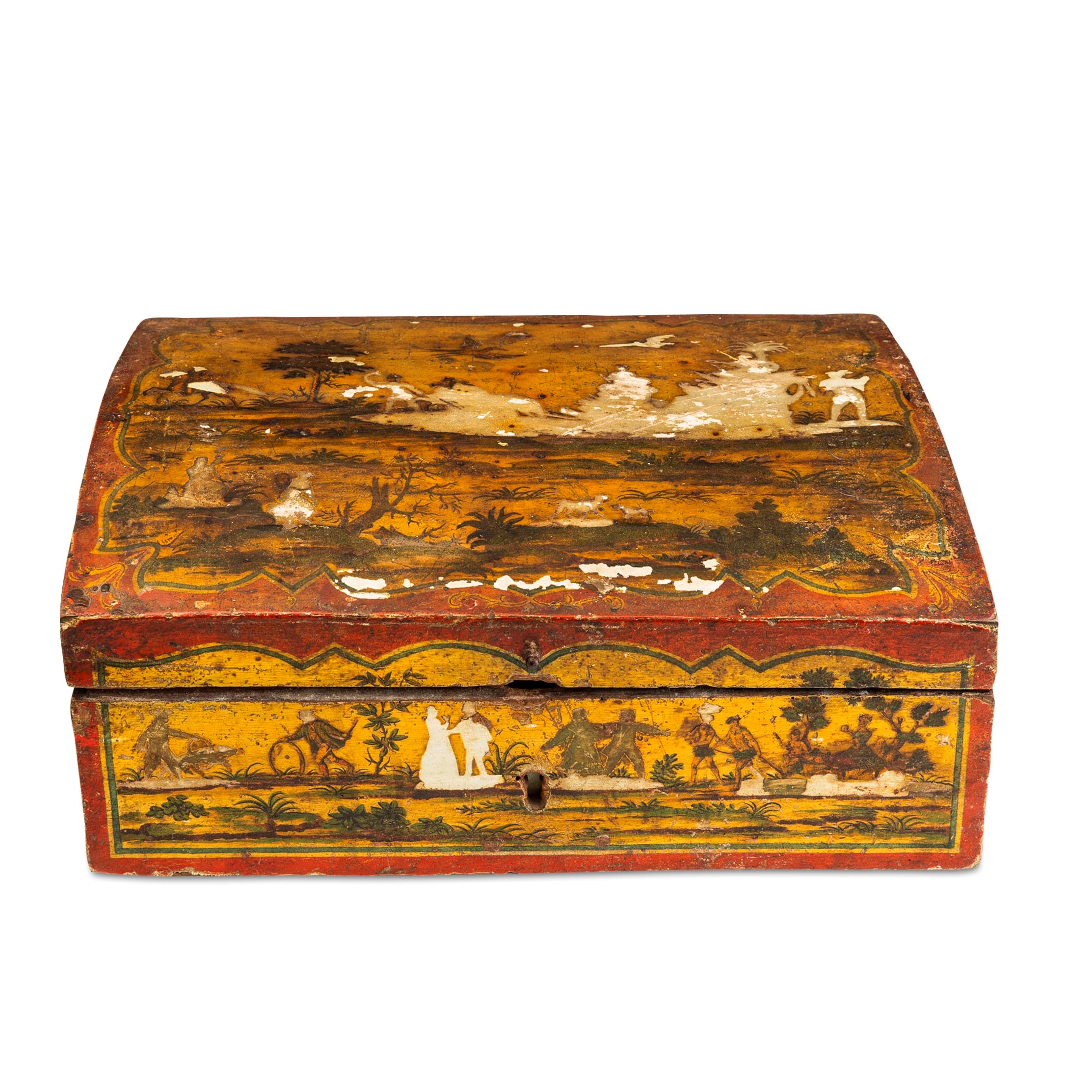 Scatola laccata decorata "ad arte povera". Veneto, XVIII secolo