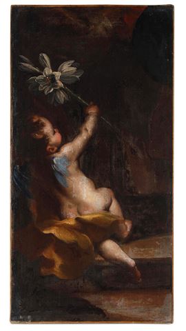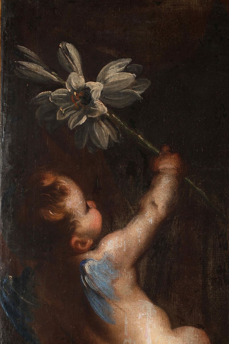 Scuola del XVII secolo Angioletto con giglio