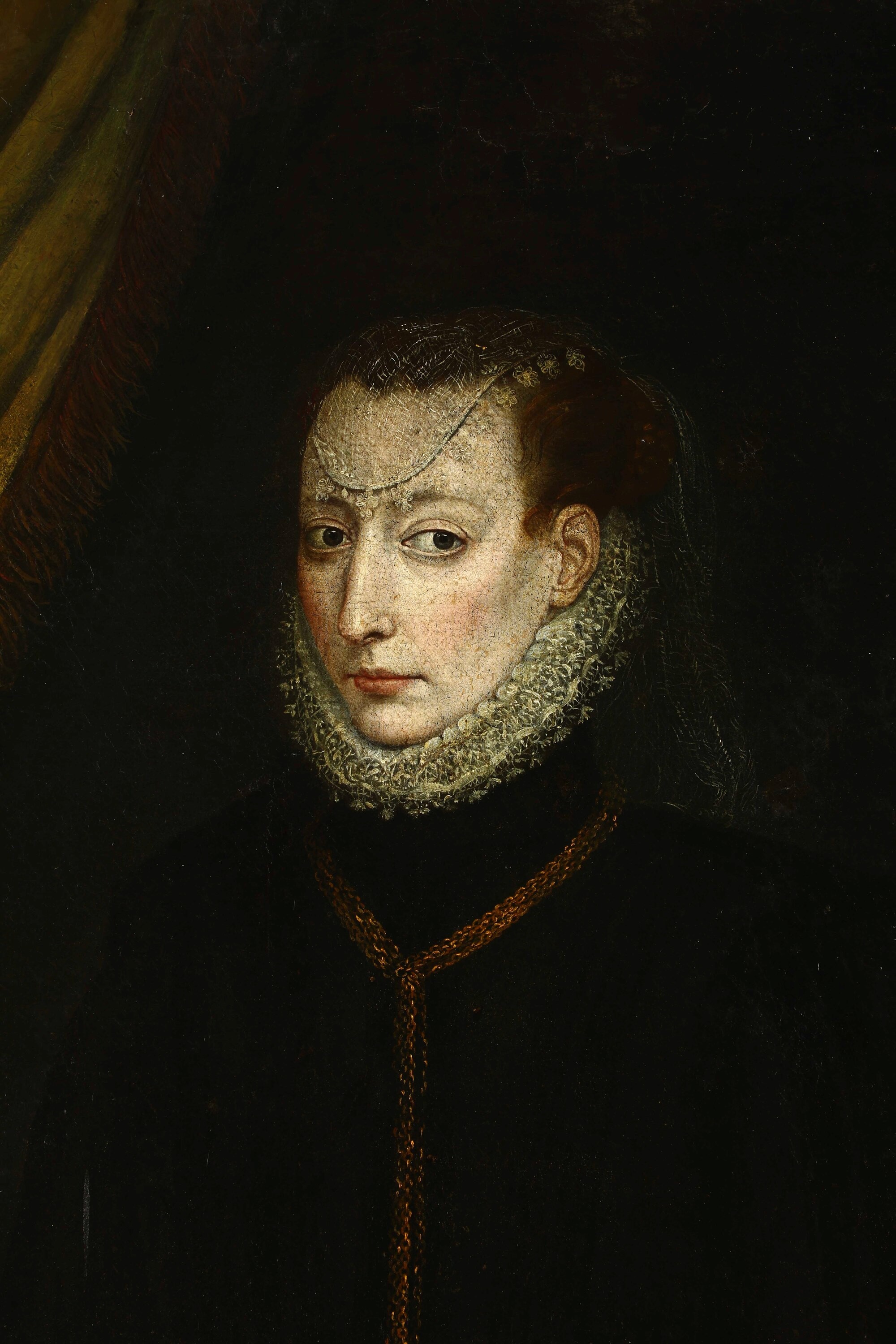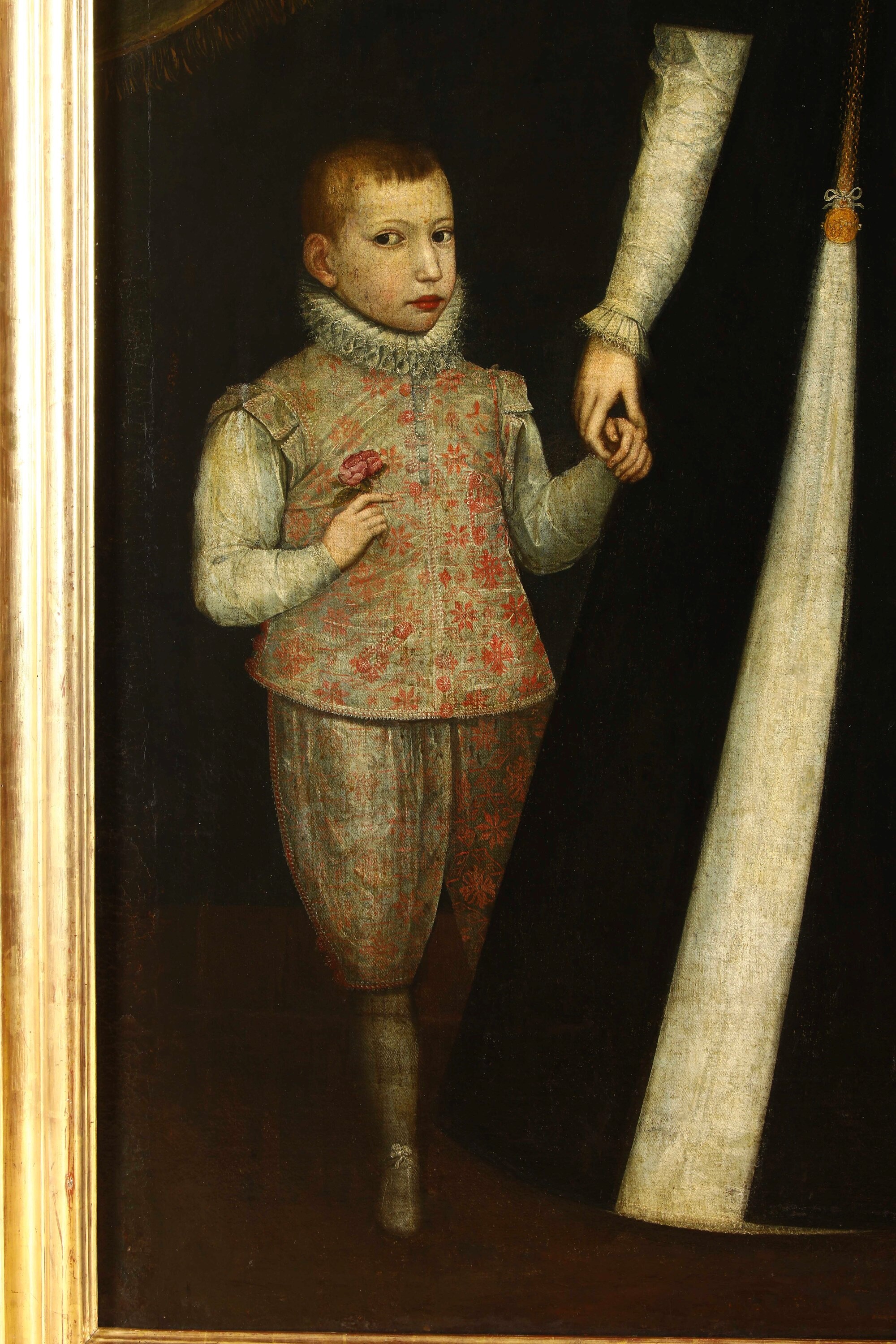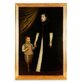 Scuola dell’inizio del XVII secolo Ritratto a figura intera di dama con infante