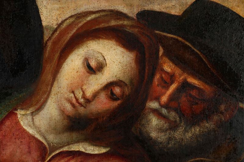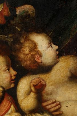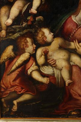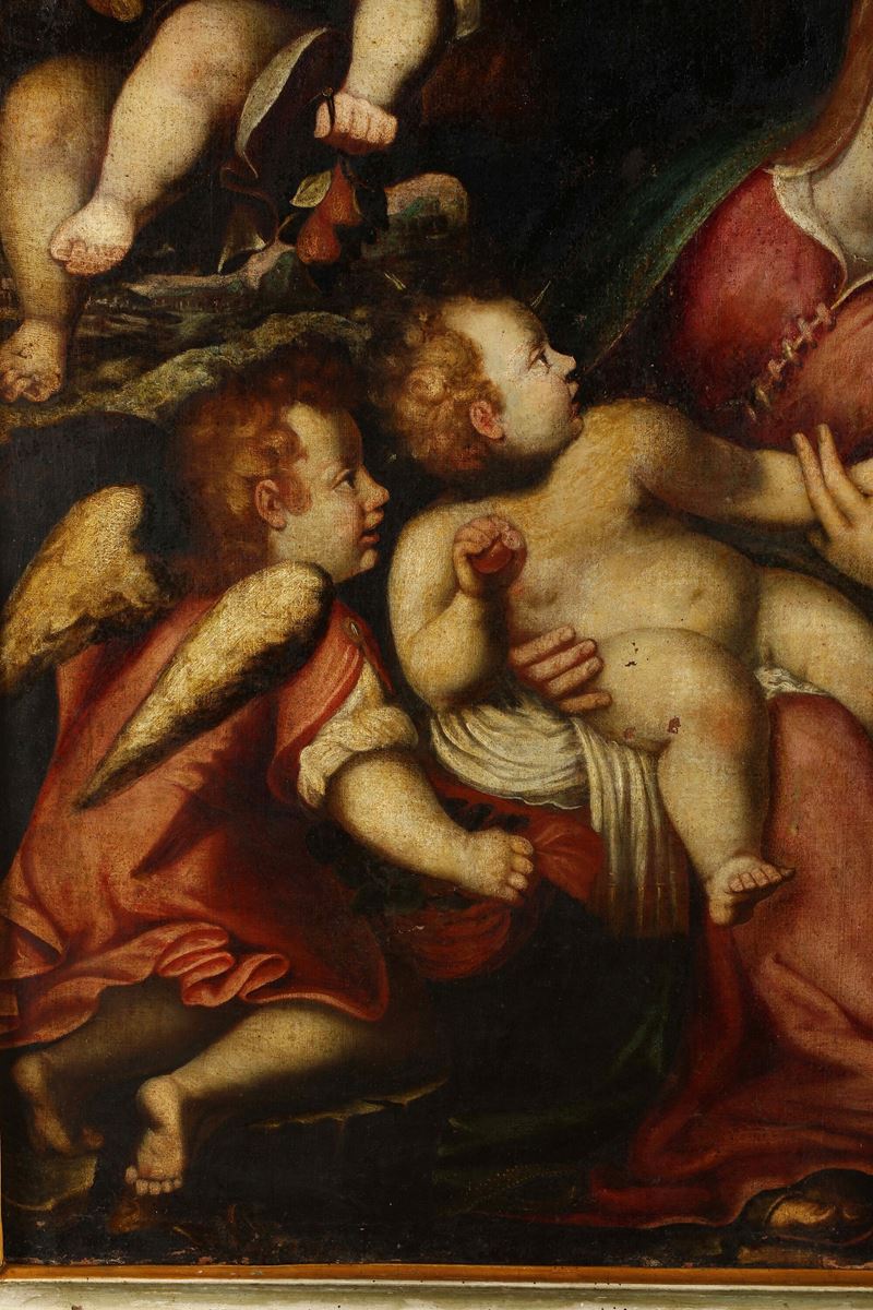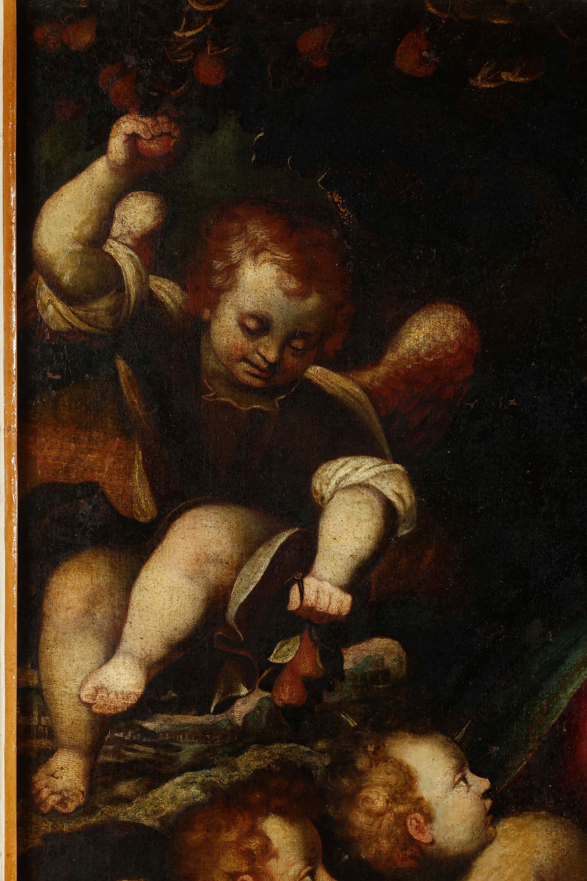 Scuola genovese del XVI secolo Sacra Famiglia con angeli