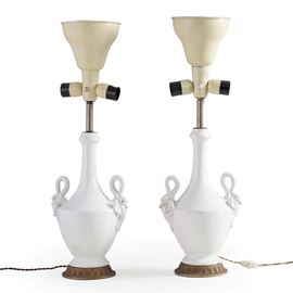 Coppia di lampade da tavolo in terracotta maiolicata. XX secolo
