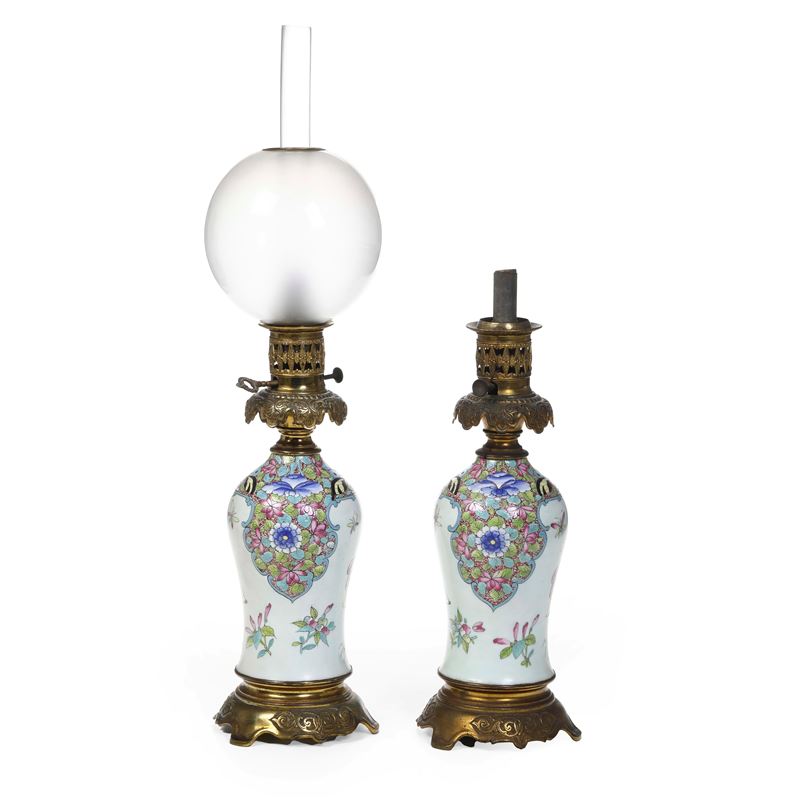 Coppia di vasi orientali montati a lampada