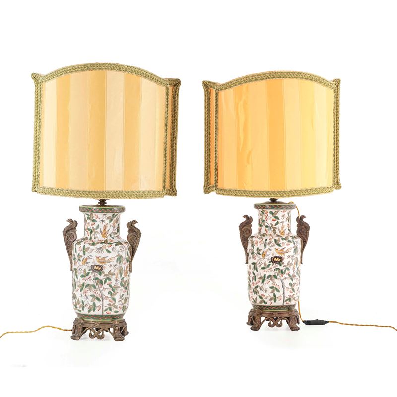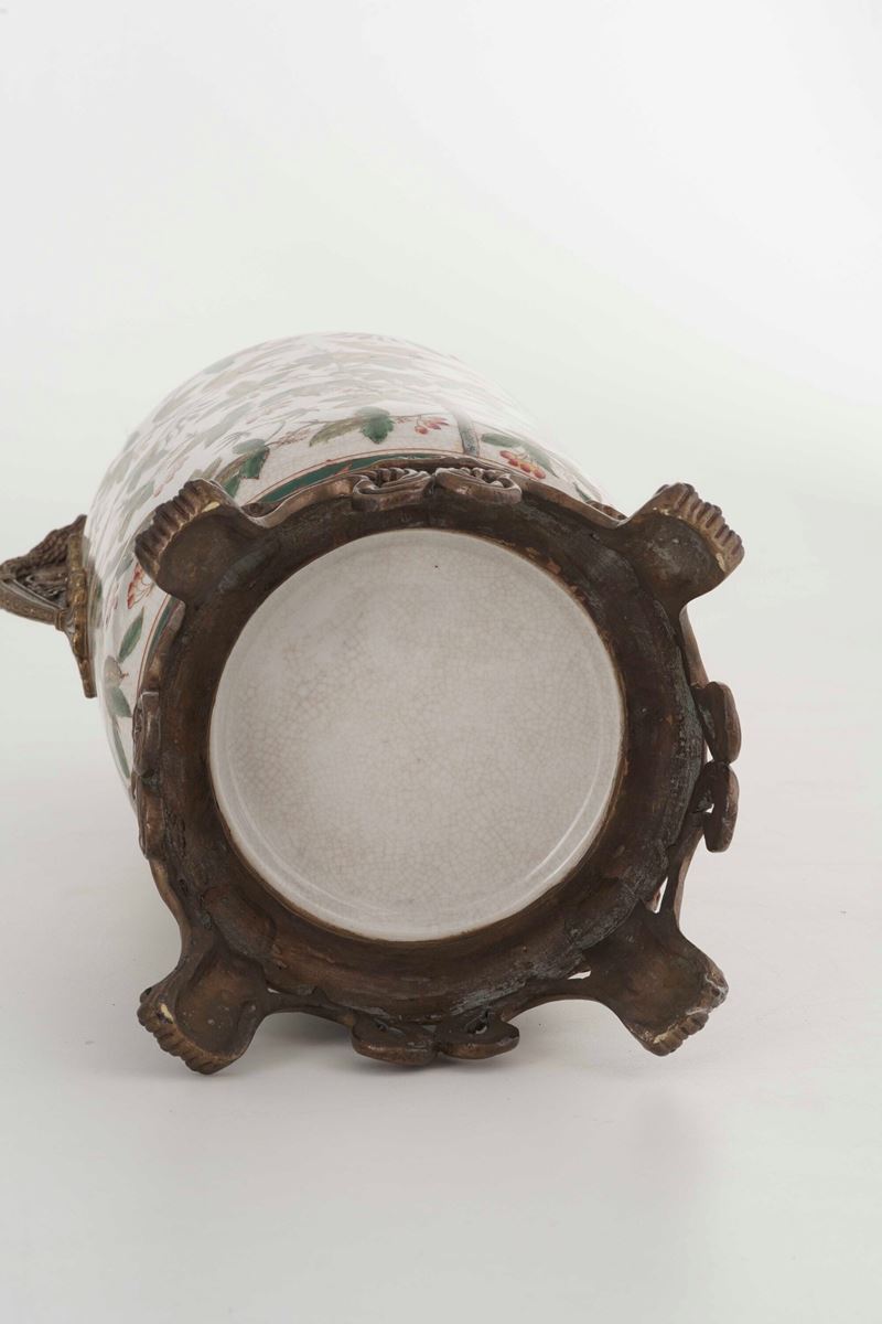 Coppia vasi in porcellana con montature in bronzo. XIX-XX secolo