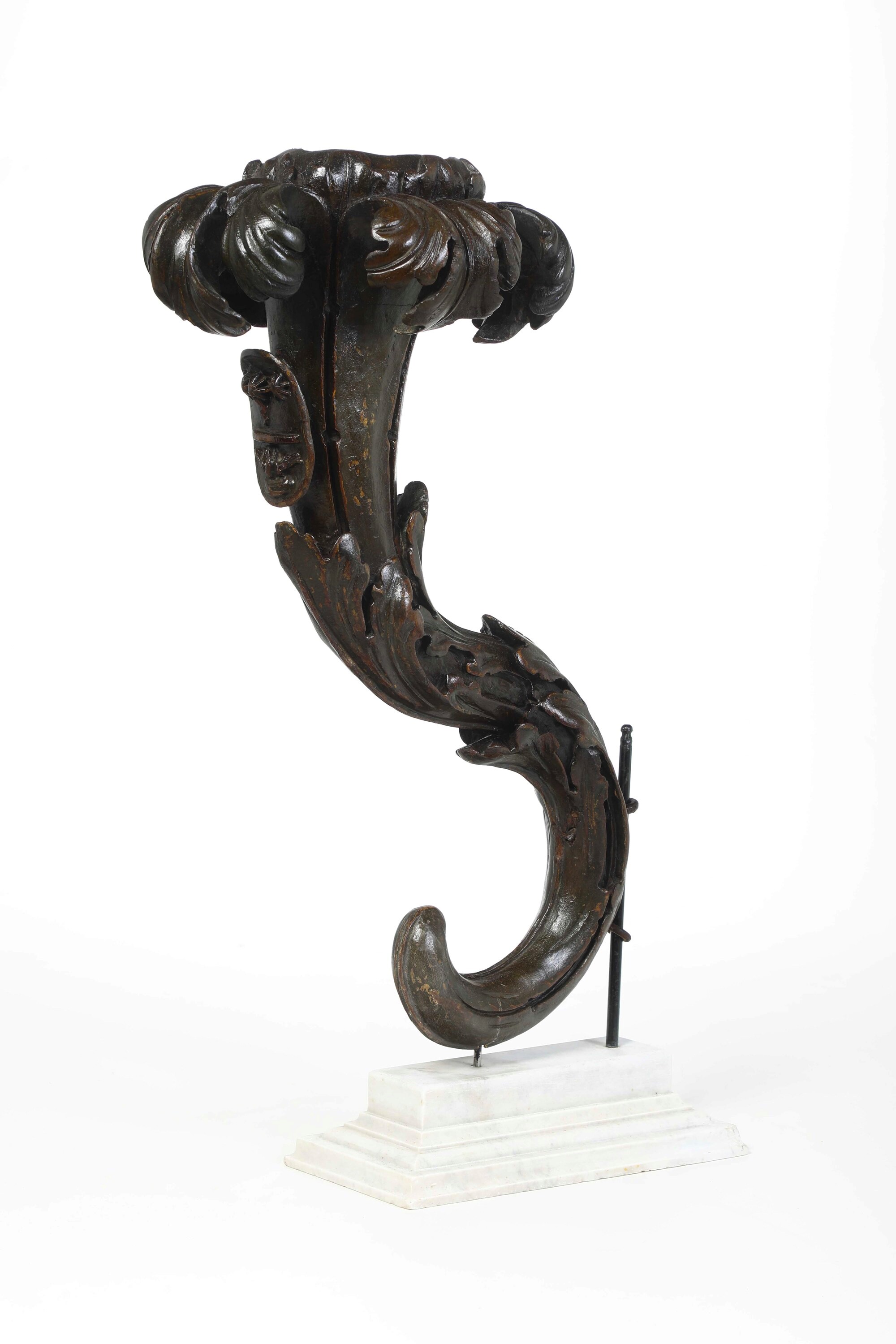 Cornucopia in legno intagliato con stemma. XVIII secolo