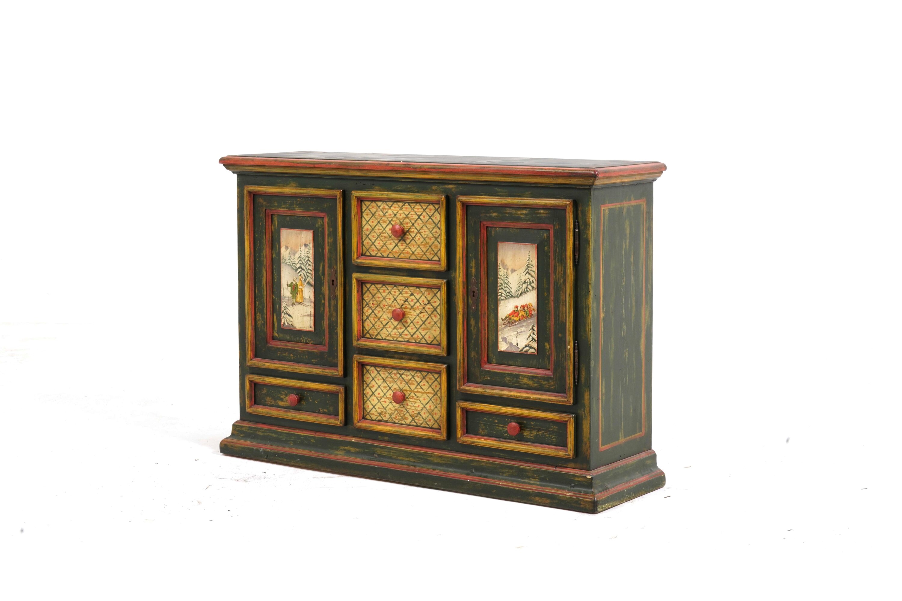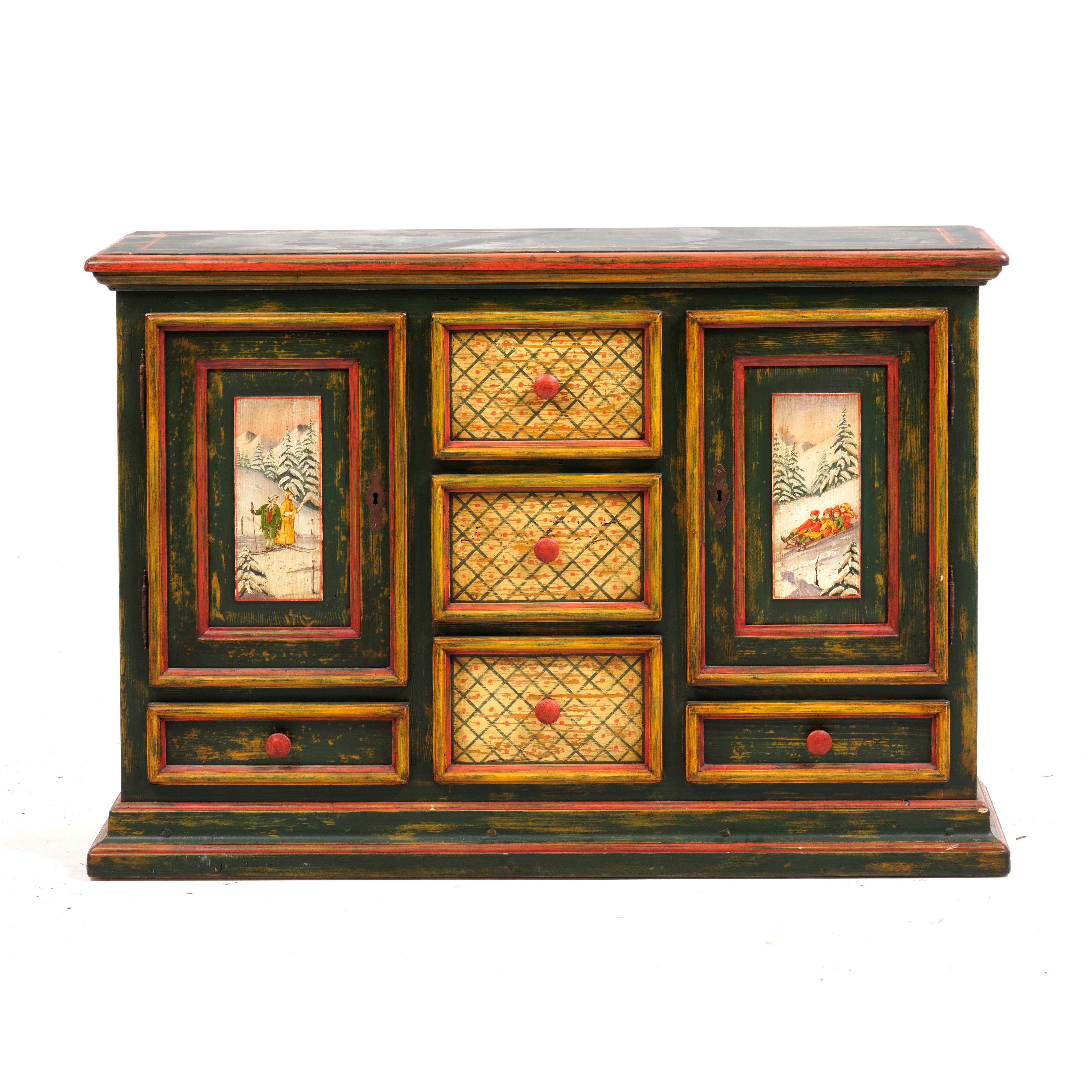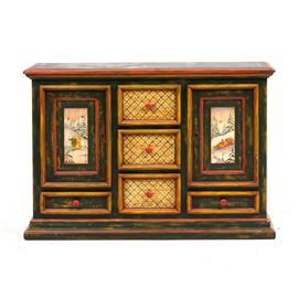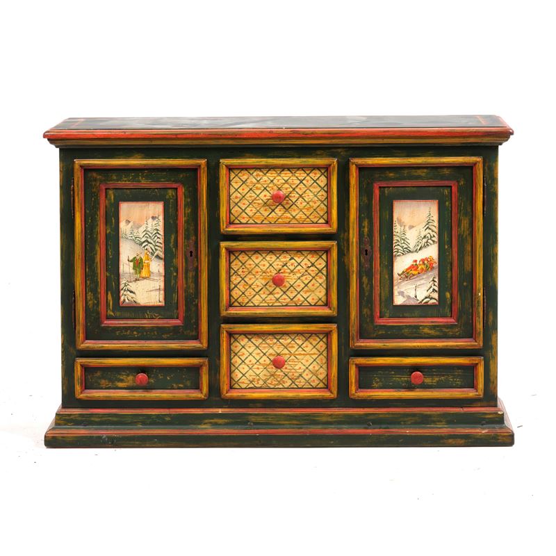Credenza in legno dipinto a 5 cassetti e due sportelli. XX secolo