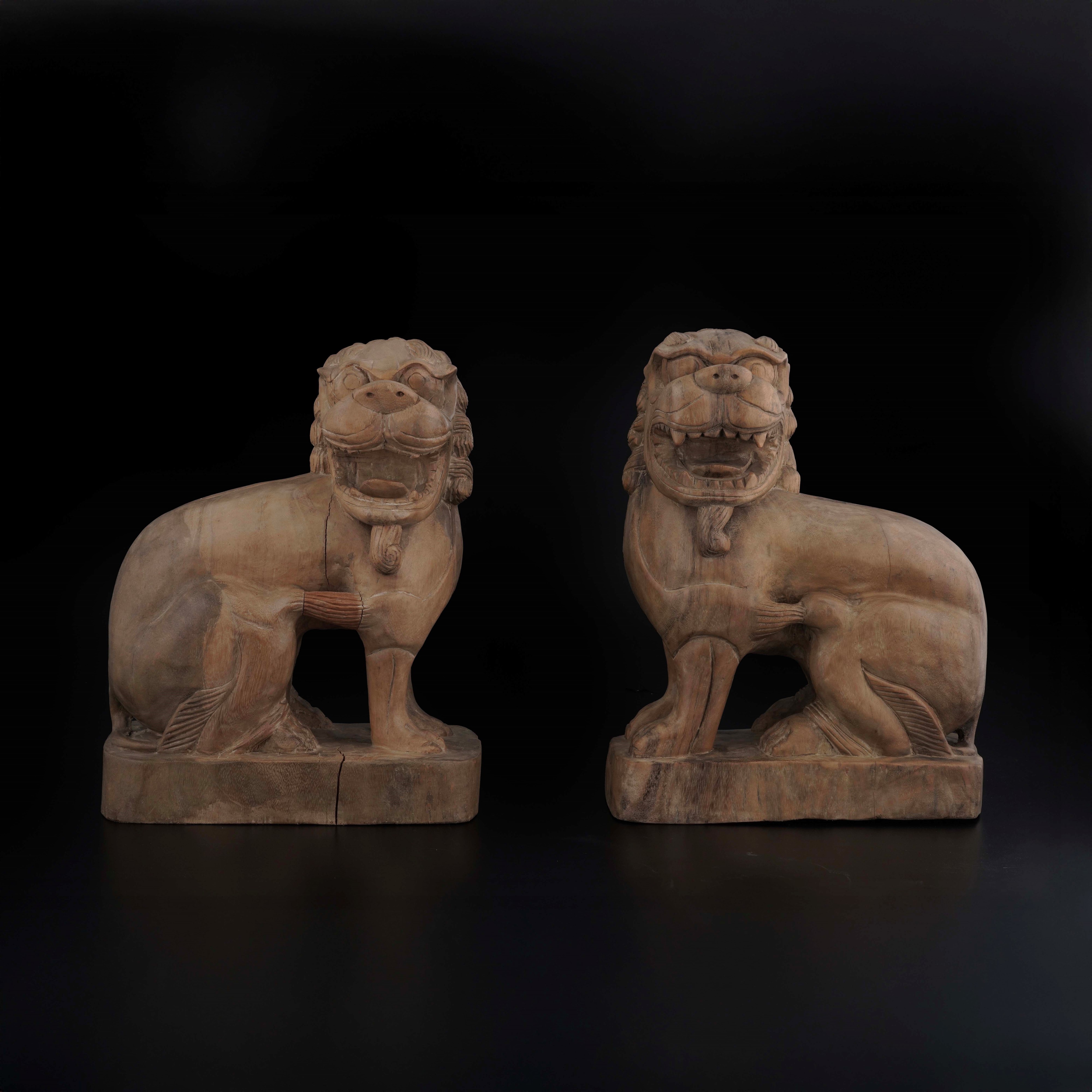 Due cani di Pho in legno intagliato. Cina XX secolo