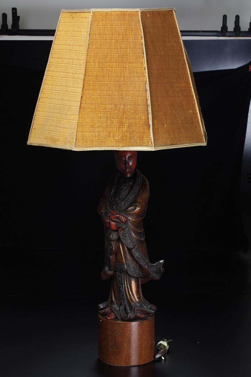 Figura di Guanyin in legno scolpito e laccato, Cina, Dinastia Qing, metà XIX secolo